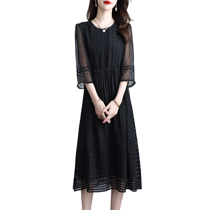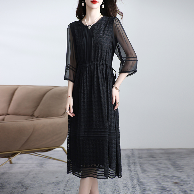 新款真丝连衣裙女中袖桑蚕丝