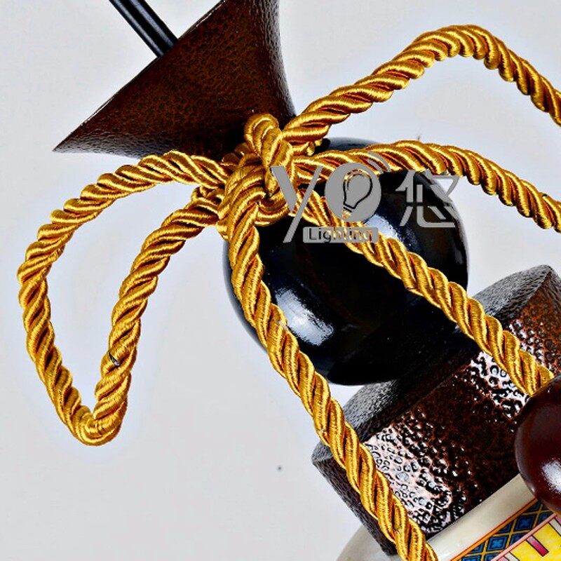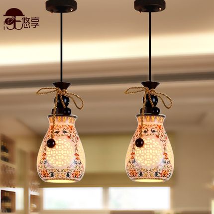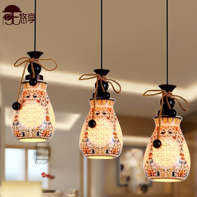 新中式吊灯具陶瓷餐厅吊灯三头饭厅吧台灯复式楼梯吊灯三色光