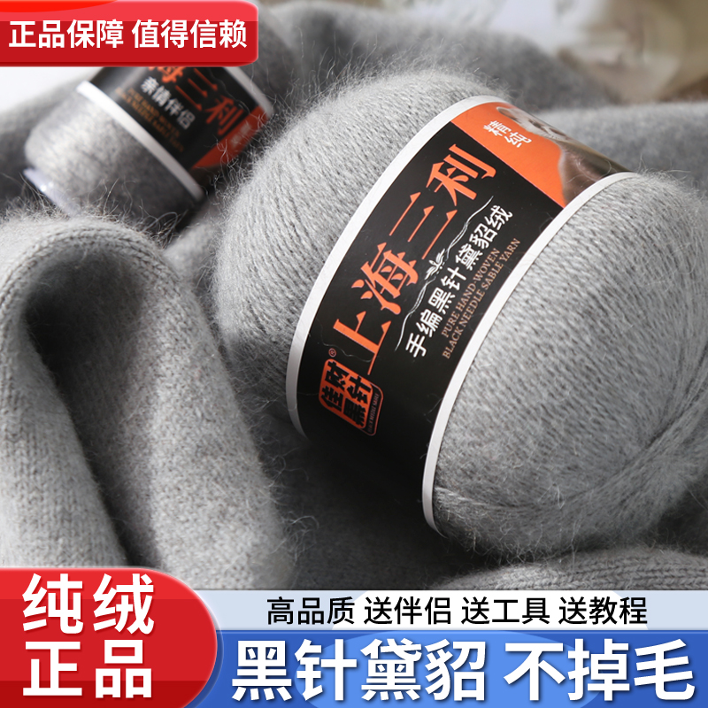 上海三利黑针黛貂正品貂绒线6+6手编貂绒毛线中粗外套羊绒线考拉