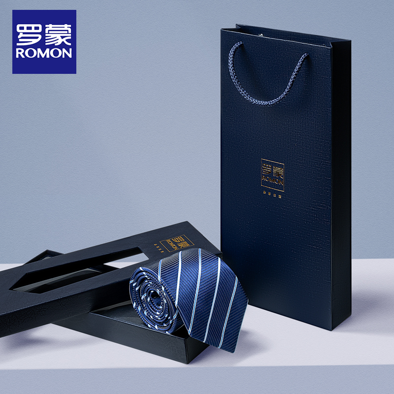 罗蒙男士免打领带职业面试新郎婚礼伴郎商务正装西装8cm礼盒装ND