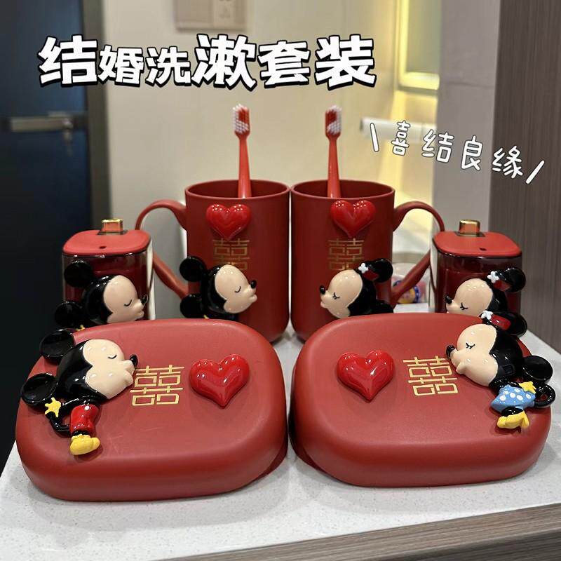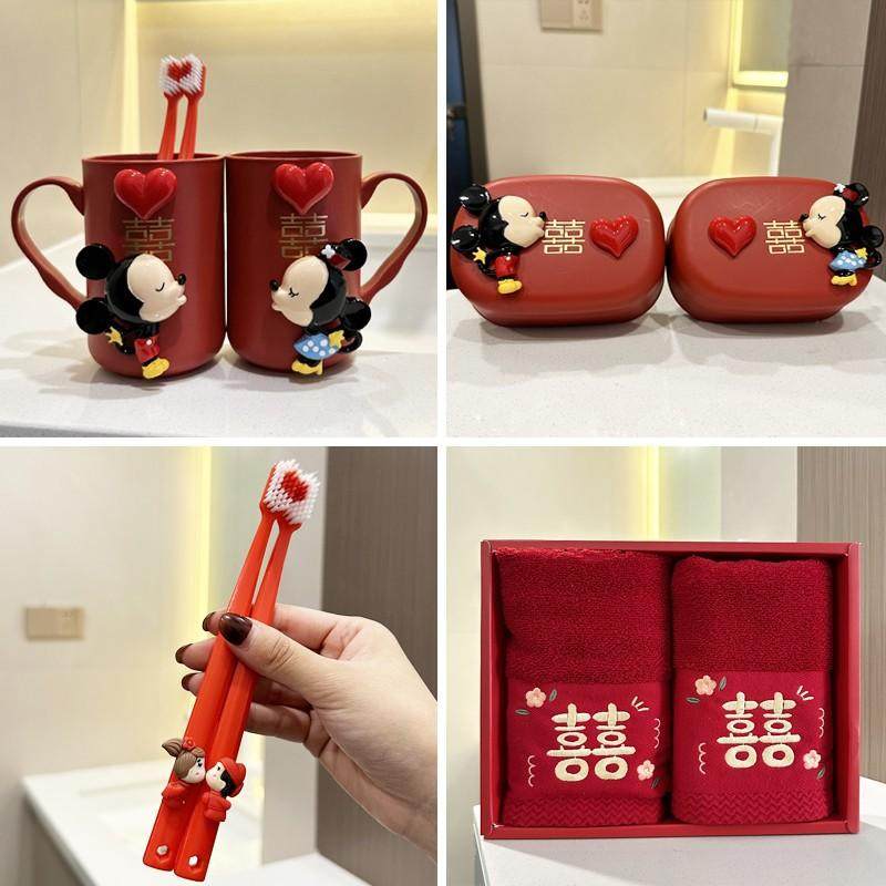 结婚刷牙杯子一对牙刷红色洗漱情侣漱口杯梳子香皂盒结婚用品