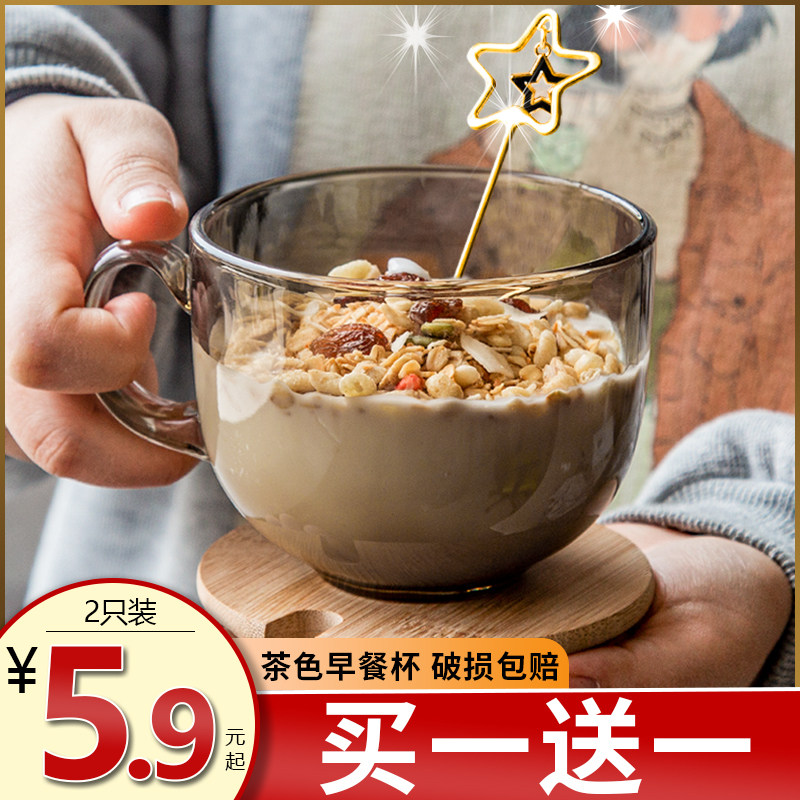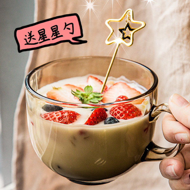 茶色玻璃杯喝水杯女燕麦牛奶早餐杯子带盖勺大容量高颜值咖啡杯子