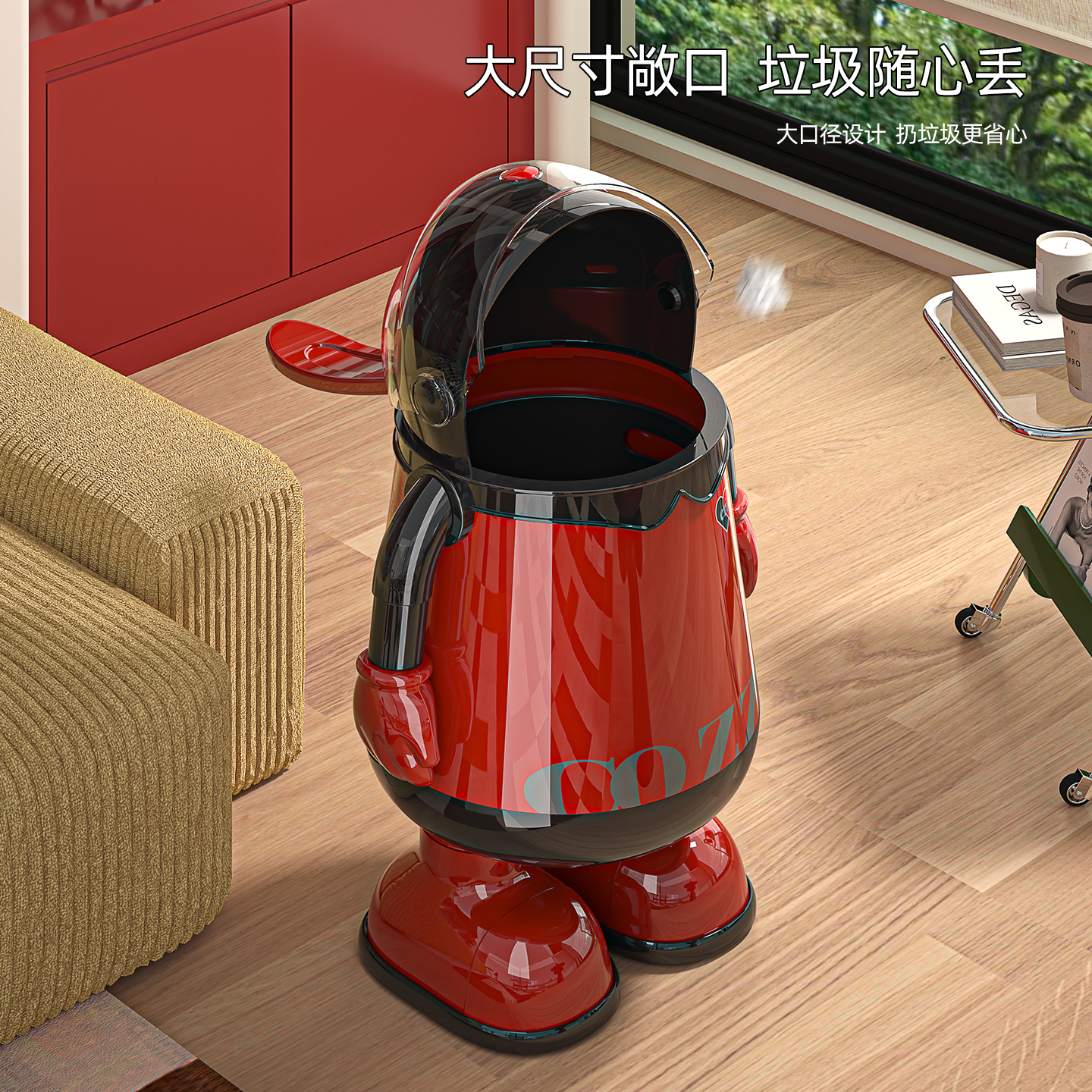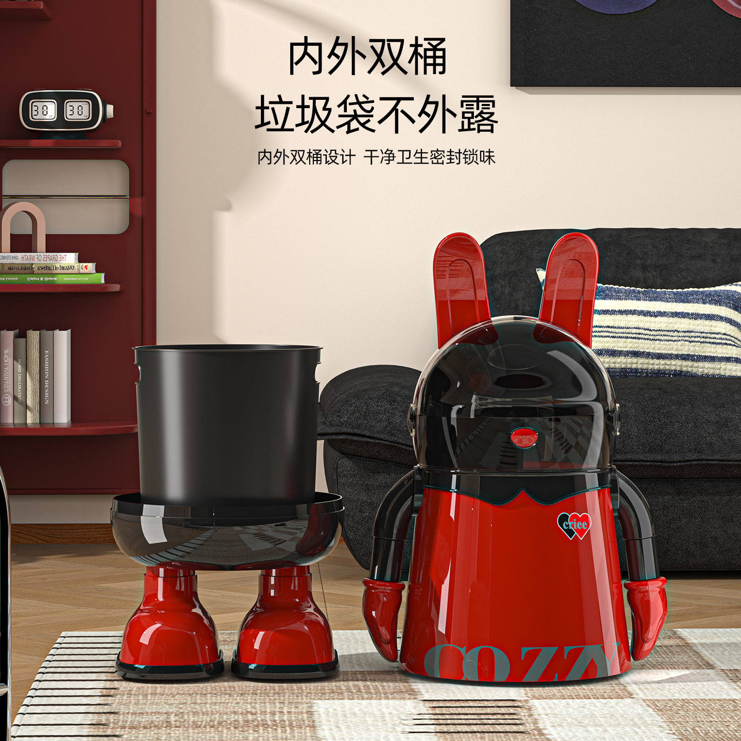 客厅垃圾桶创意2025新款家用卡通高颜值大容量垃圾筒卧室带盖纸篓