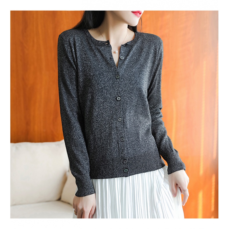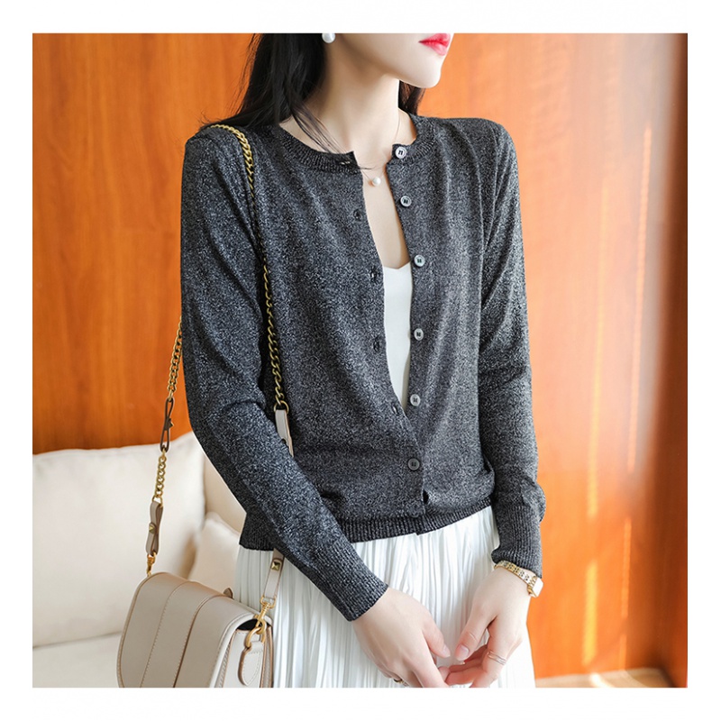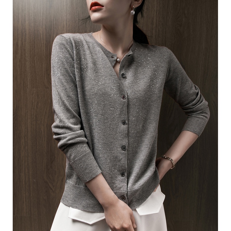 精纺羊绒针织开衫女夏季外搭圆领短款小香风亮丝毛衣披肩小外套薄