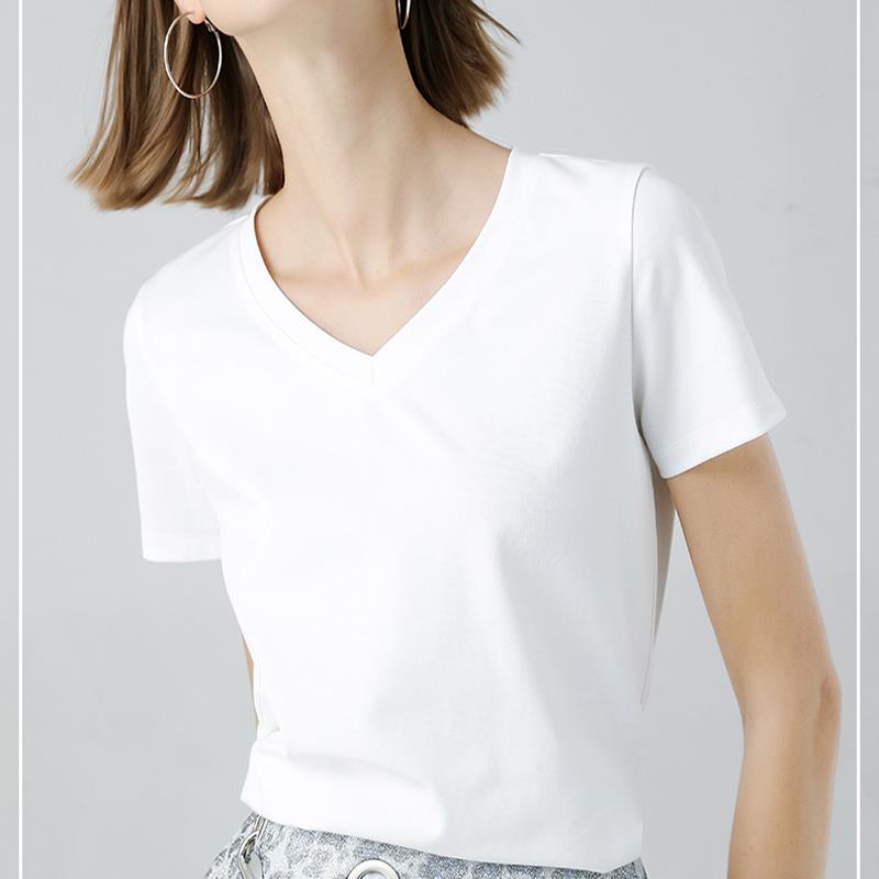 白色V领短袖T恤女士2024夏季新款丝光棉纯色冰Q丝正肩体恤净版上
