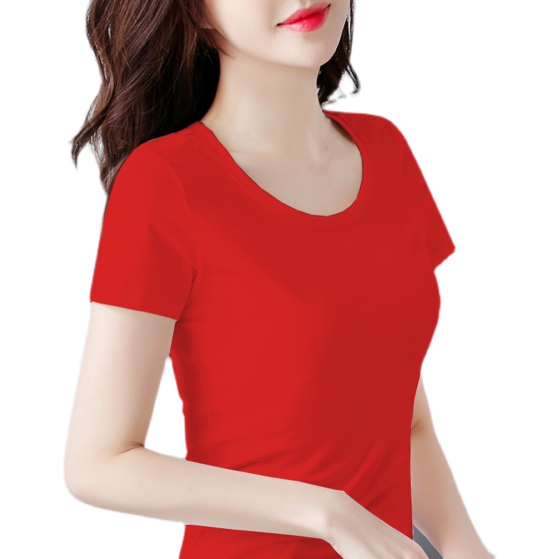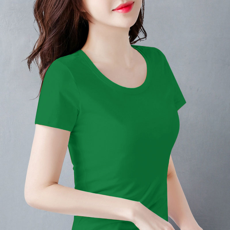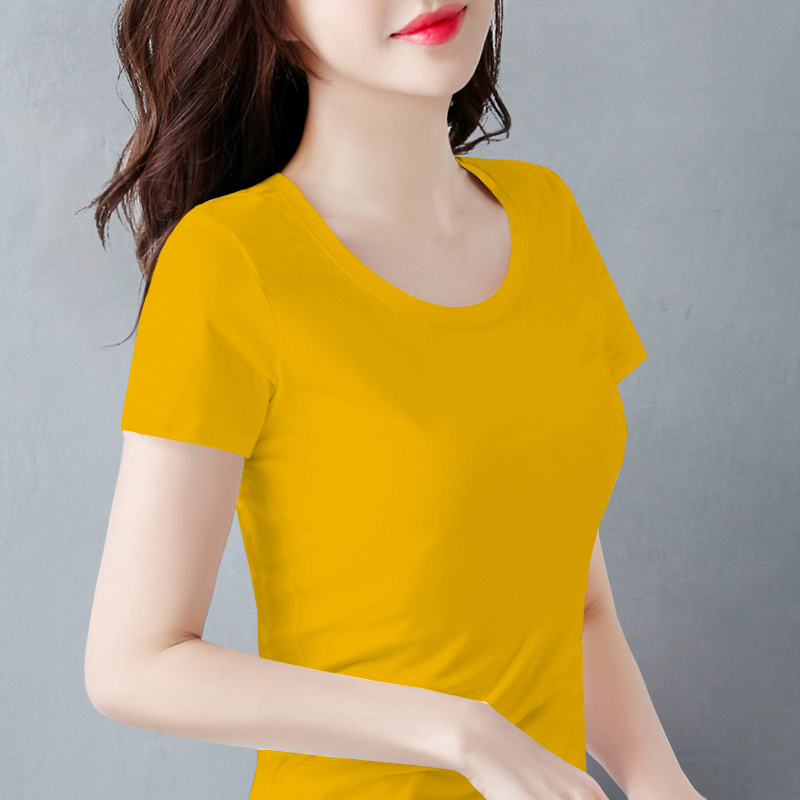 2025年新款短袖t恤修身夏装百搭纯色正肩半袖体恤衫女士上衣服潮