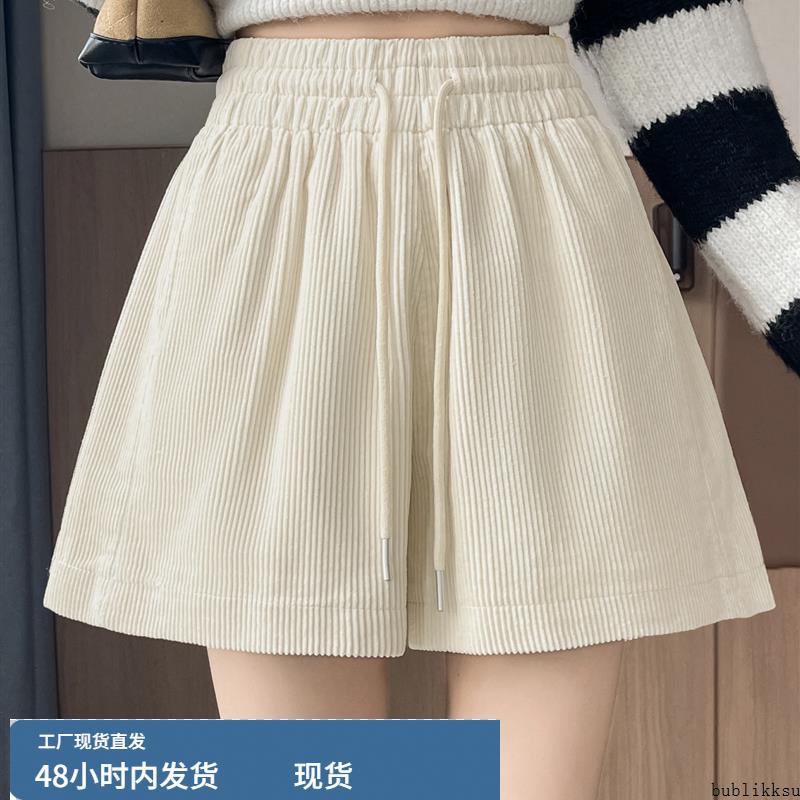 灯芯绒a字短裤女秋冬外穿裤子休闲裤2025新款高腰阔腿裤显瘦女裤