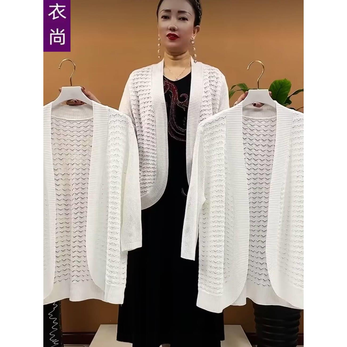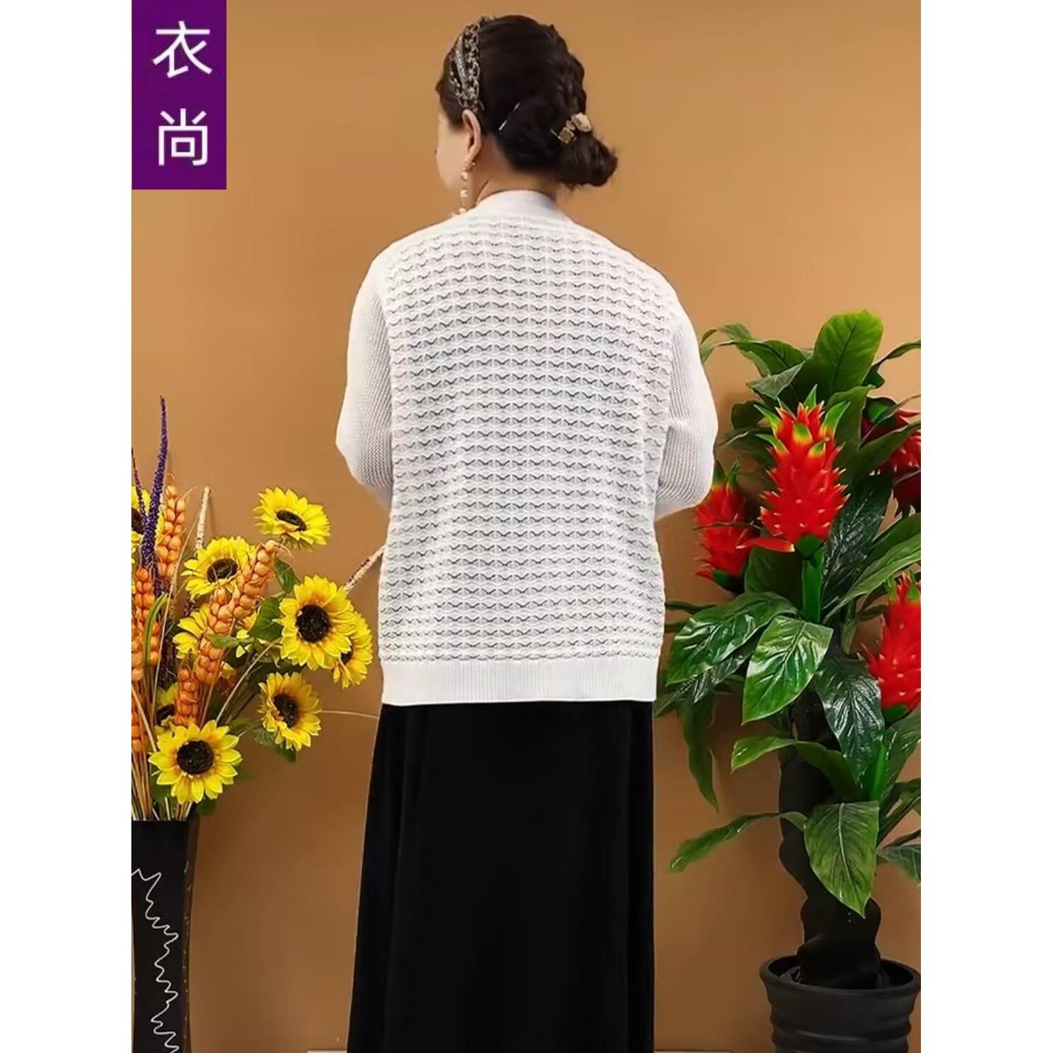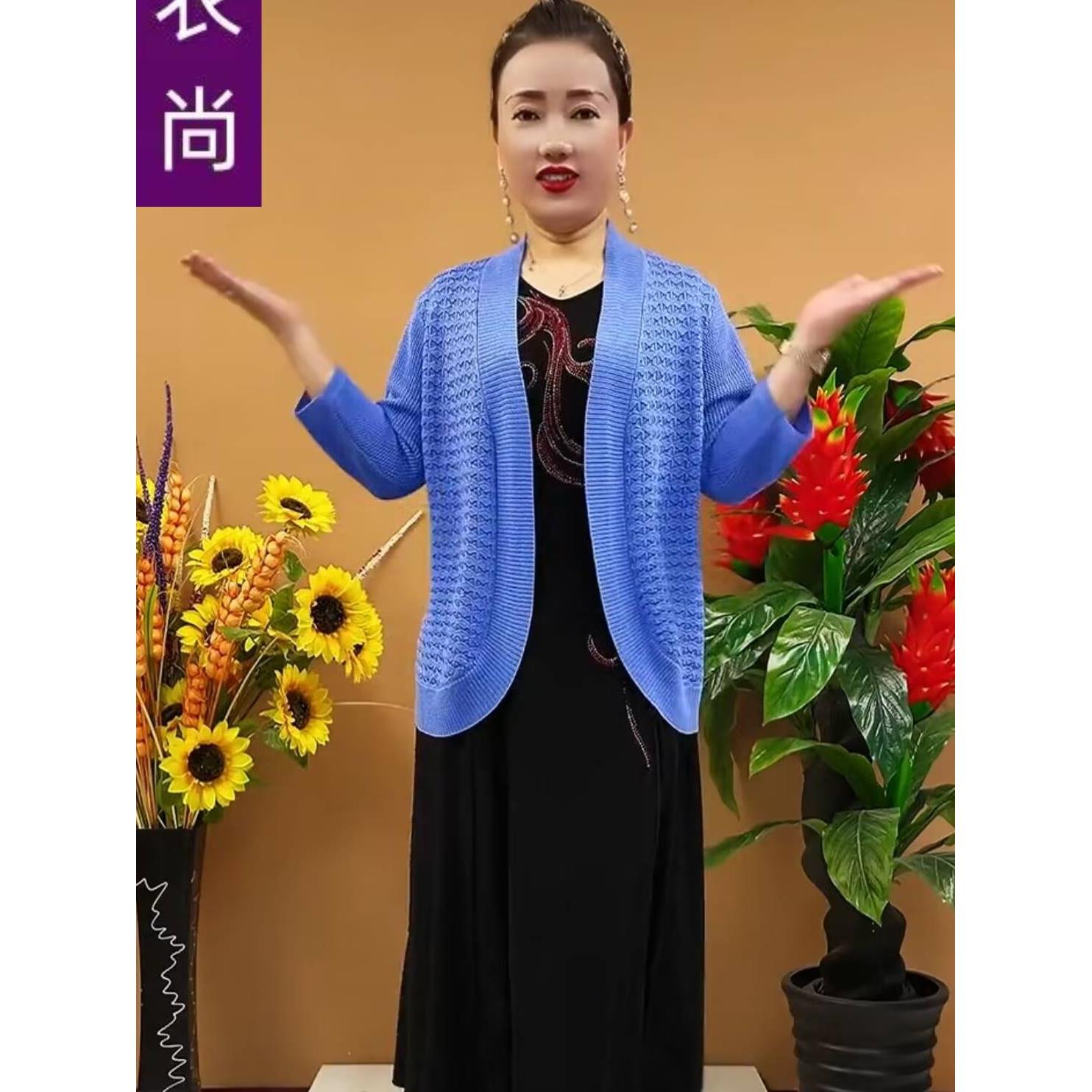 妈妈夏装洋气针织衫镂空上衣中老年女春秋外搭披肩冰丝开衫薄外套