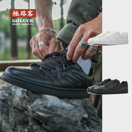 极路客新款Ant Extend系列黑白色 篮球鞋 头层皮男女款情侣滑板鞋
