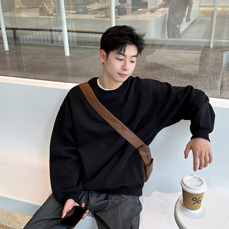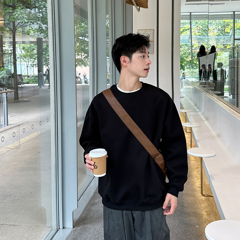 420g重磅黑色基础圆领卫衣男生2025春秋季男套头外套长袖内搭宽松