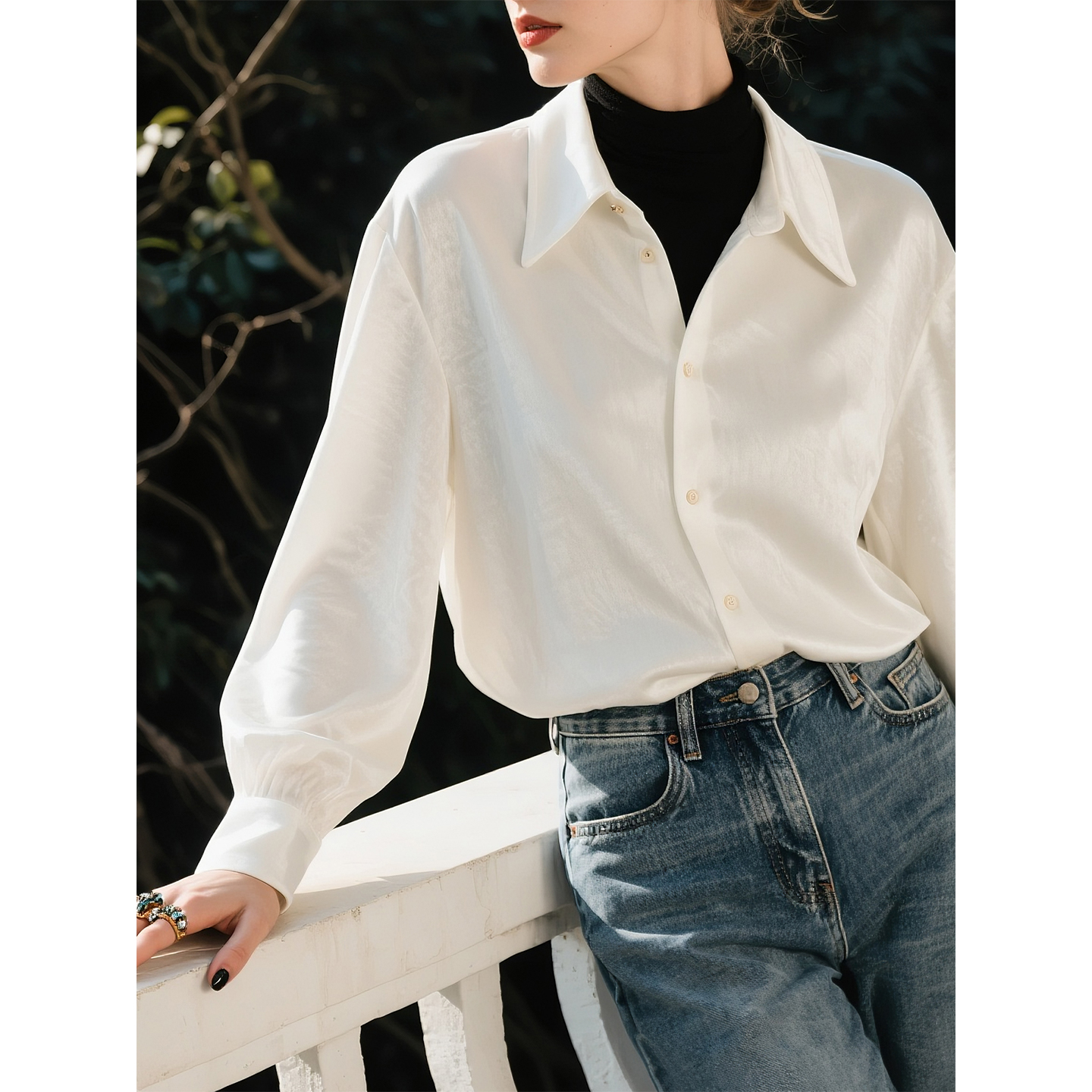 白色丝绒衬衫女2025年秋冬新款