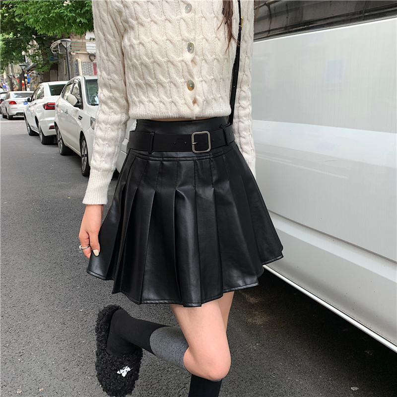 秋冬大码复古咖色皮裙百褶裙女高腰百搭a字半身裙防走光显瘦短裙