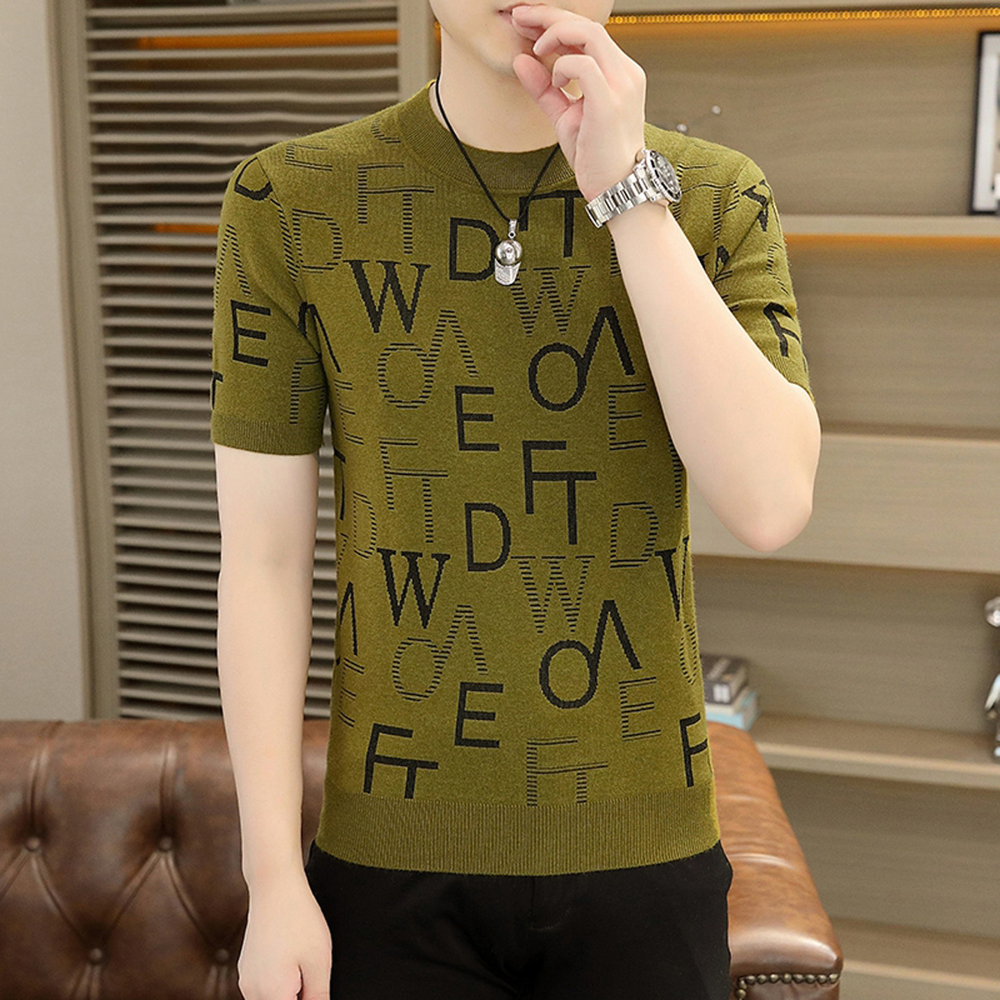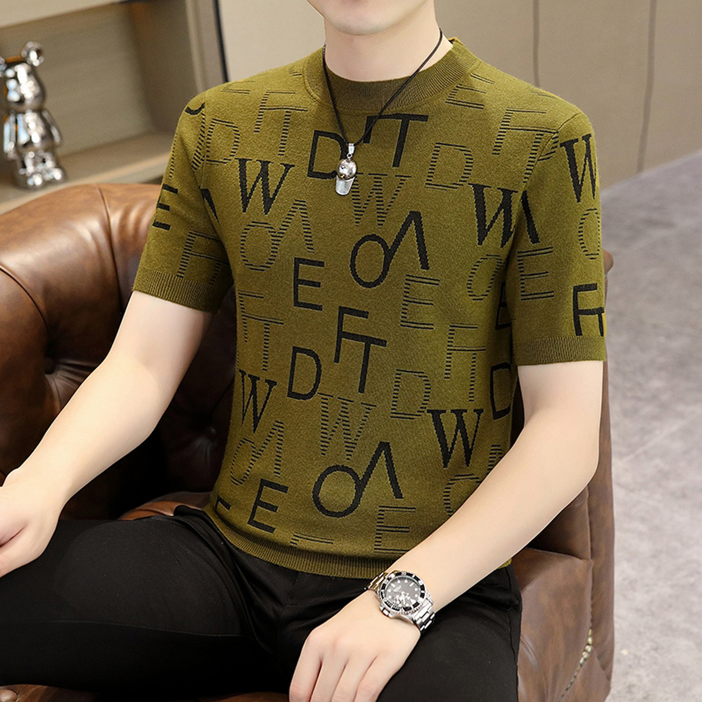 2025新款圆领毛衣男士短袖针织衫