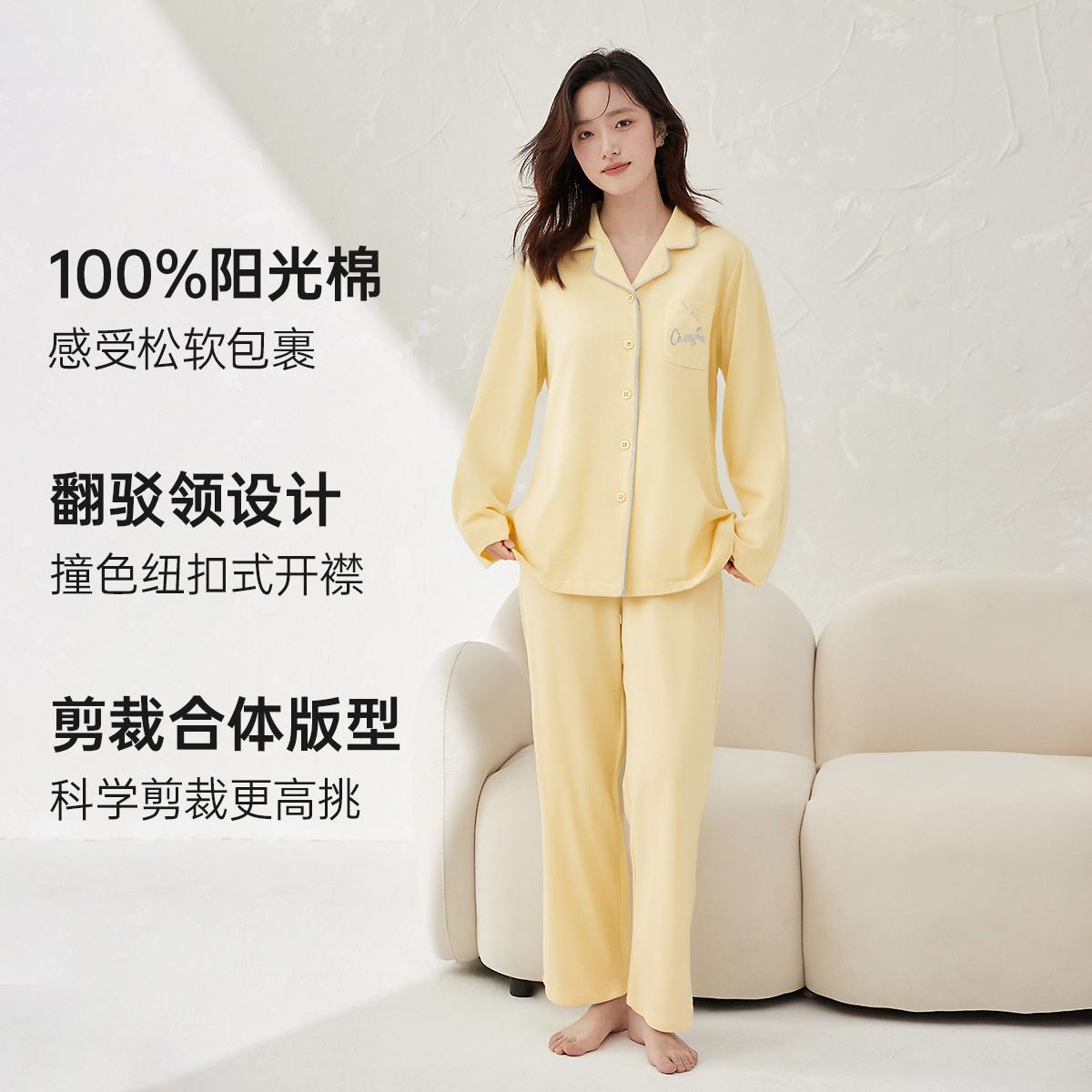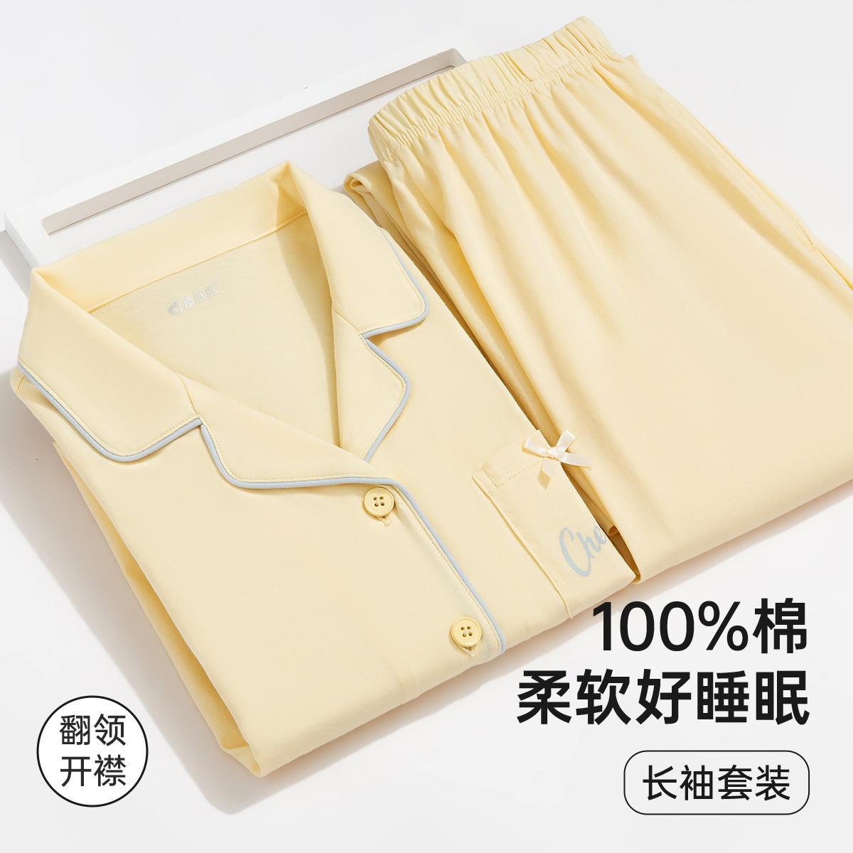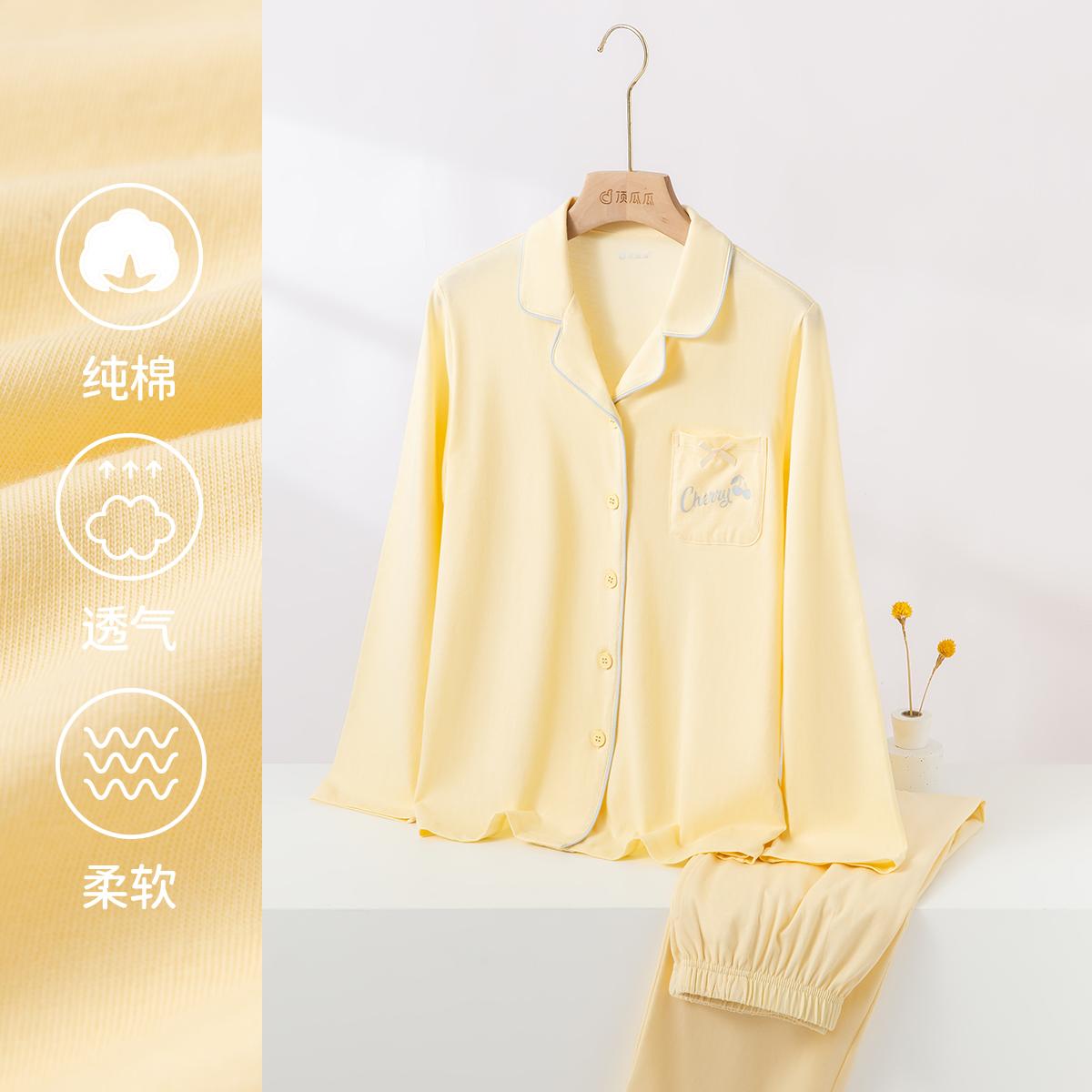 顶瓜瓜纯棉睡衣女款春夏季长袖薄款可外穿家居服套装女士