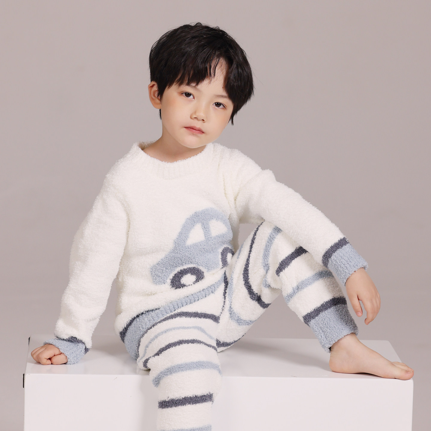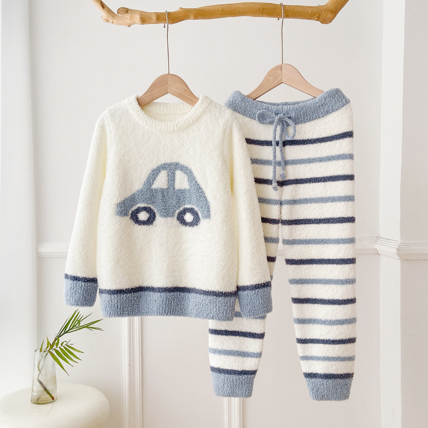 秋冬半边绒儿童睡衣男童珊瑚绒家居服套装加厚女孩宝宝法兰绒新款