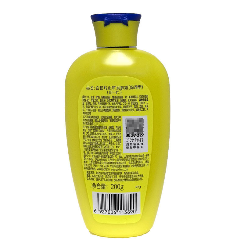 百雀羚止痒润肤露保湿型200g滋润缓解干痒身体乳面霜补水皮肤干燥