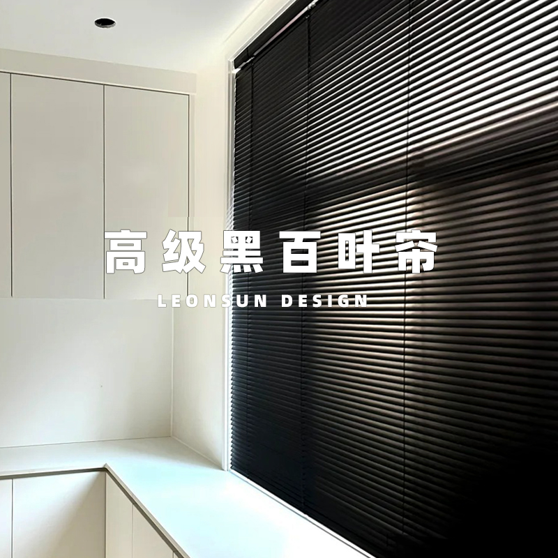全遮光黑色铝百叶窗帘免打孔厨房卫生间浴室防水防偷窥升降卷拉帘