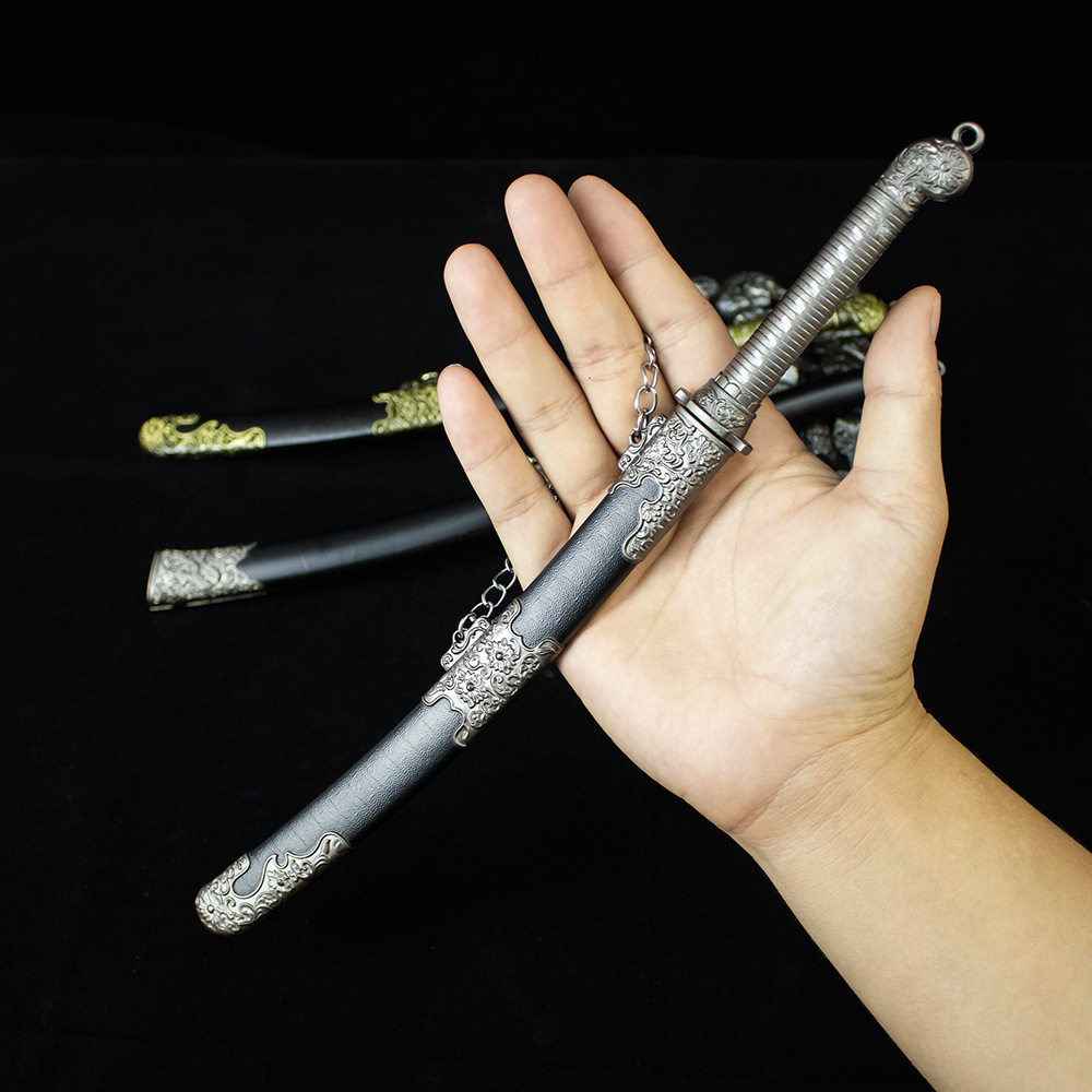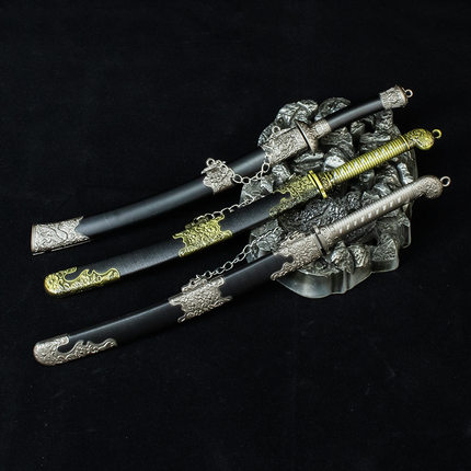 龙虎牛尾刀古代名剑带鞘30厘米金属墨羽刀鞘配剑武器模型摆件玩具