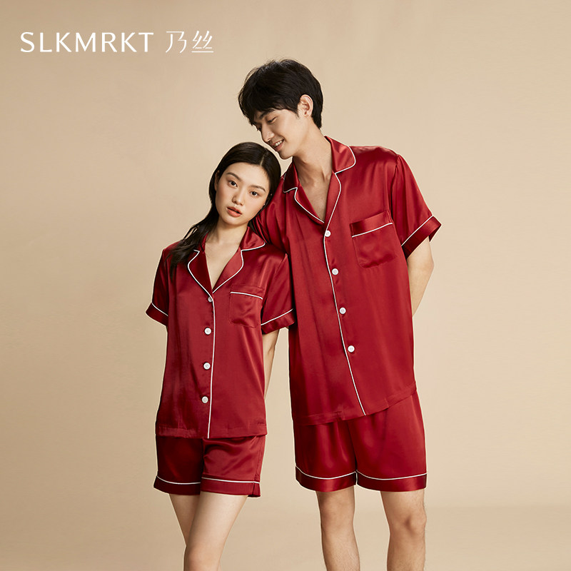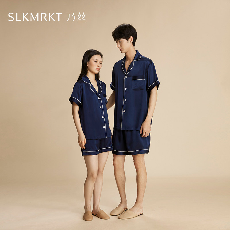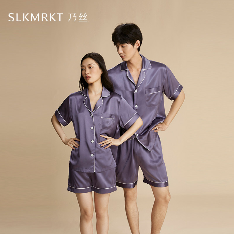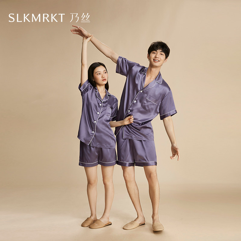 礼物送男友女友】SLKMRKT乃丝真丝情侣睡衣100%桑蚕丝短袖家居服