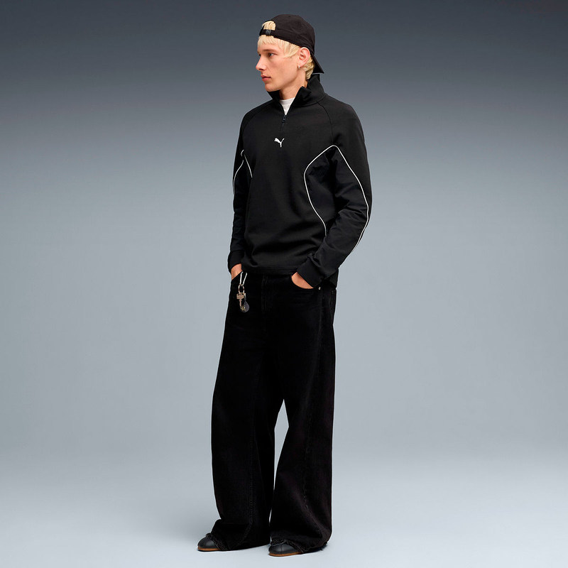 PUMA彪马春季新款男士休闲运动服黑色上衣立领针织卫衣694201-01