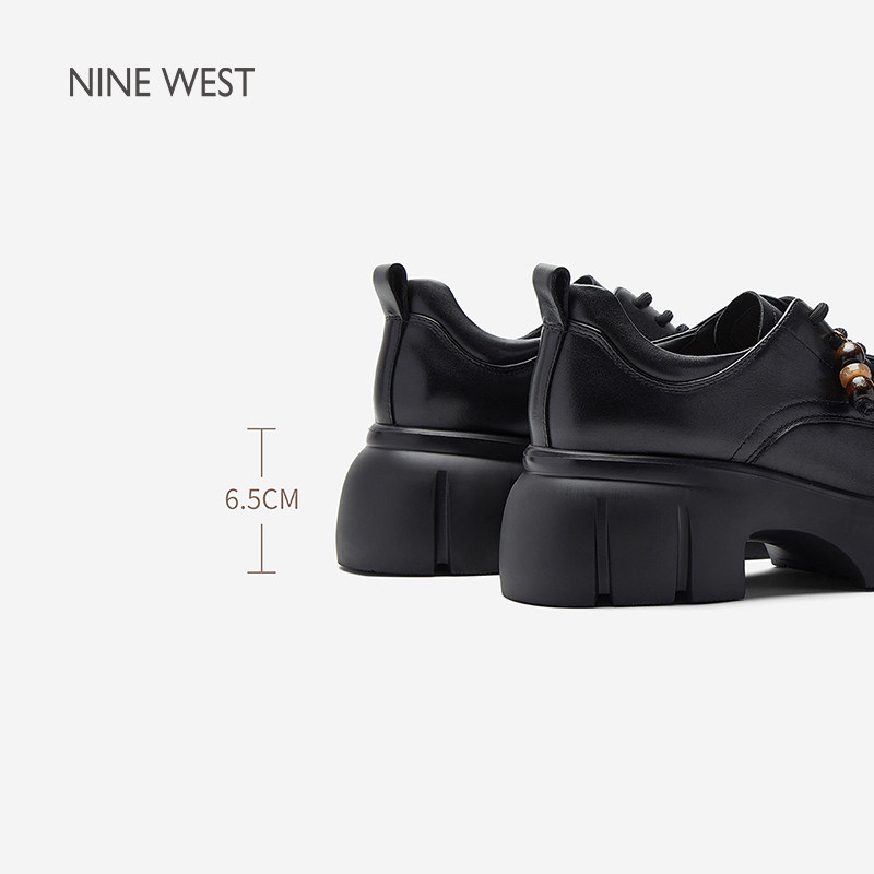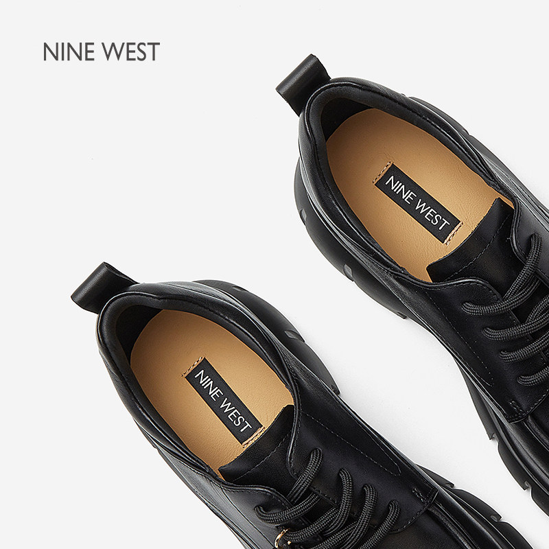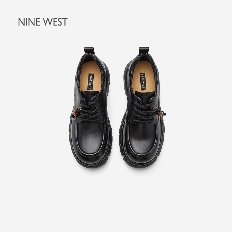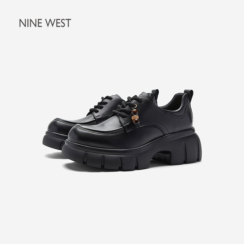 奥莱专供Nine West/玖熙2025厚底乐福鞋女英伦风圆头系带小皮鞋女