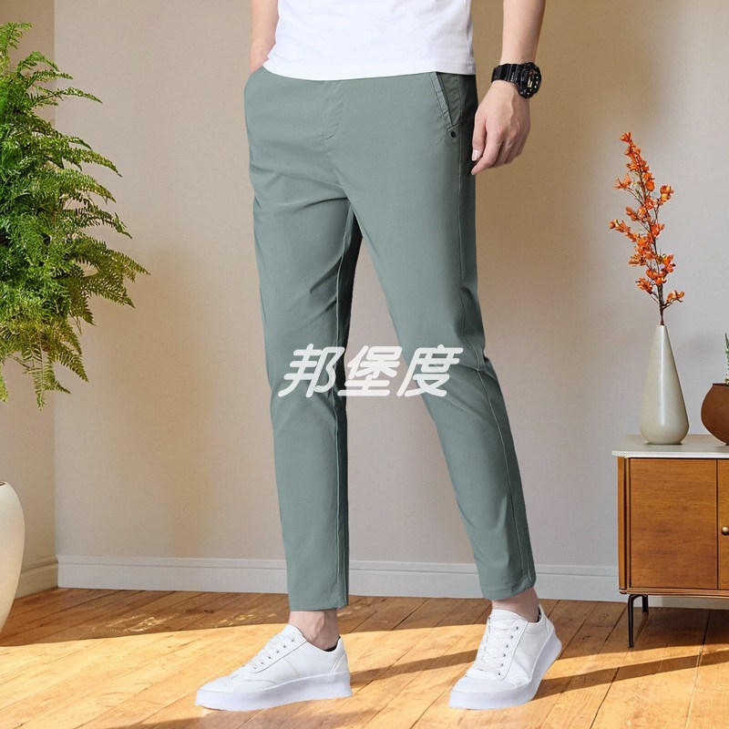 免烫休闲裤男款夏季薄款修身小脚裤九分裤男士裤子2024新款9分裤