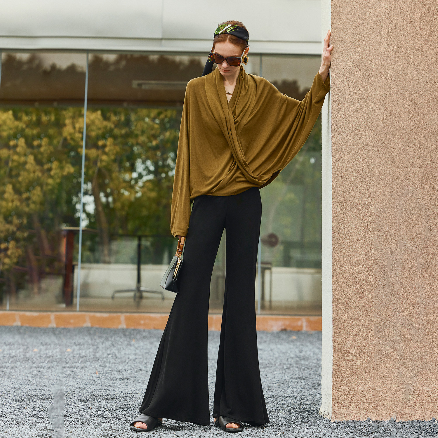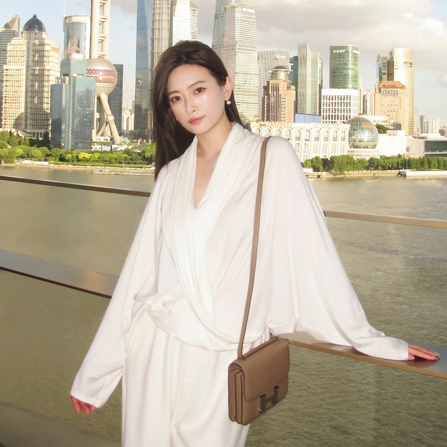 TU女装米白色荡领设计感长袖衬衫上衣2026年春新款复古慵懒风衬衣