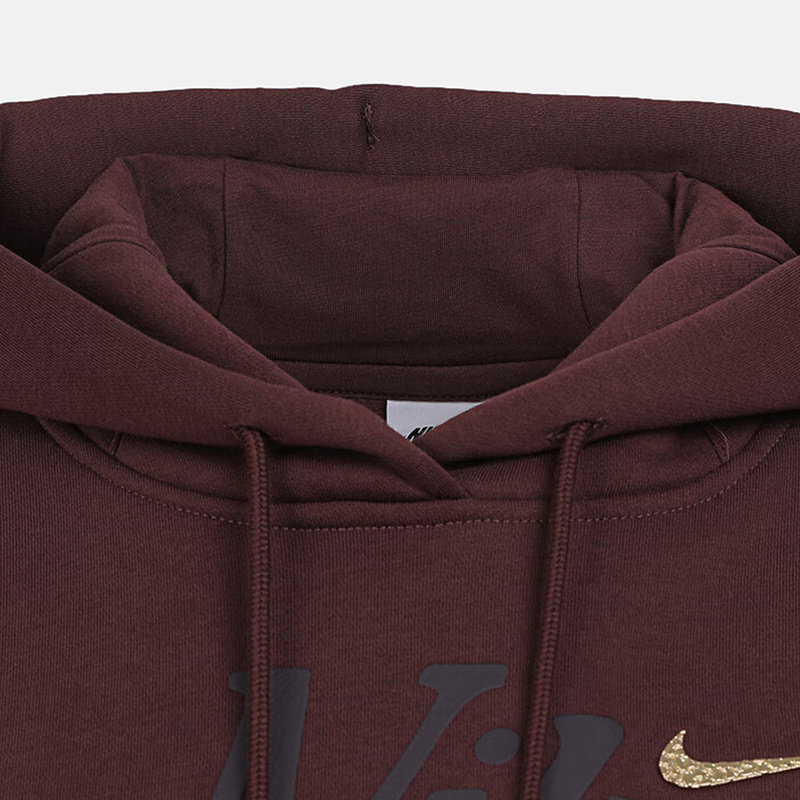 NIKE耐克加绒卫衣女冬新款酒红色宽松印花连帽套头衫HV2784-652