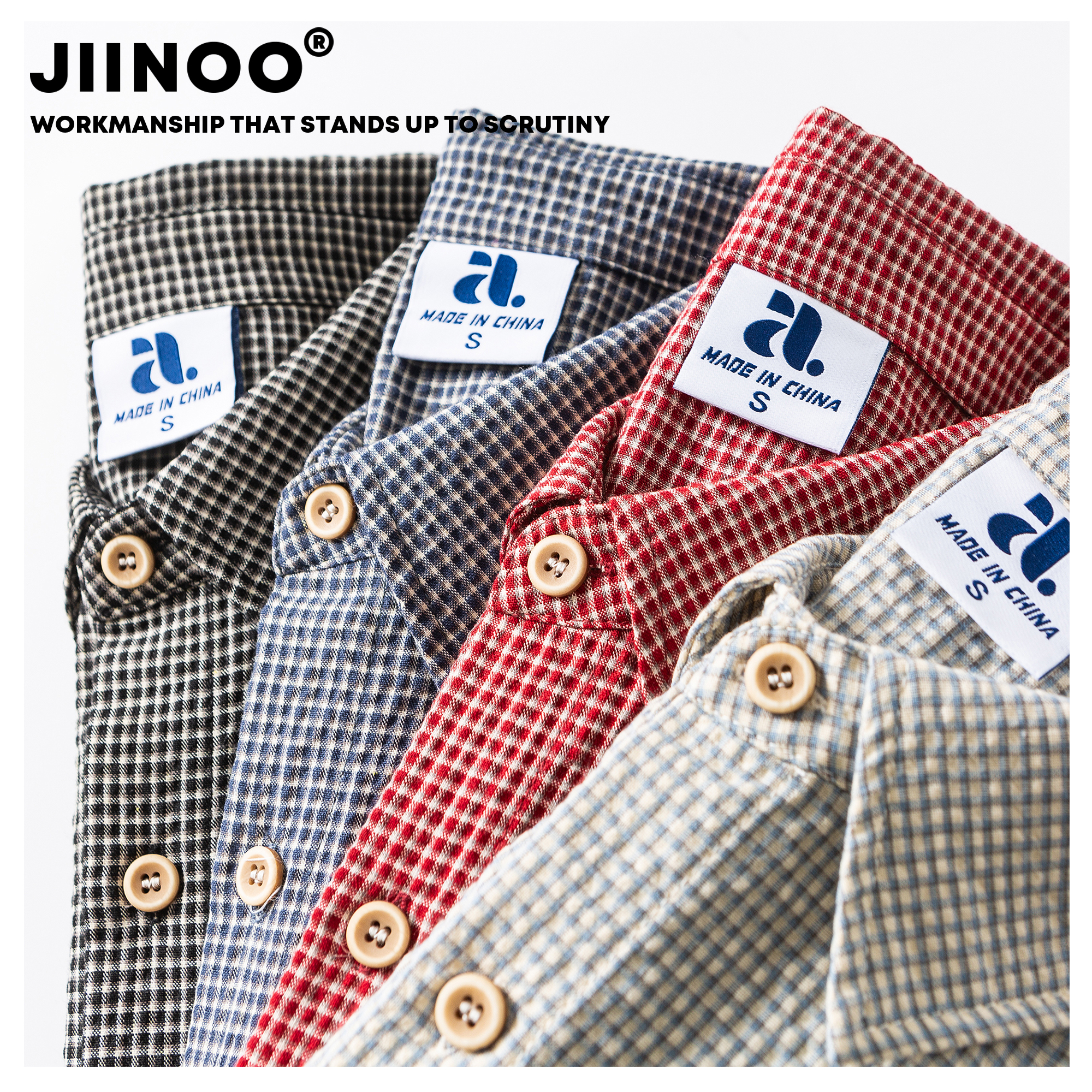 JIINOO潮牌美式格子cleanfit长袖衬衫男女复古宽松泡泡纱百搭衬衣
