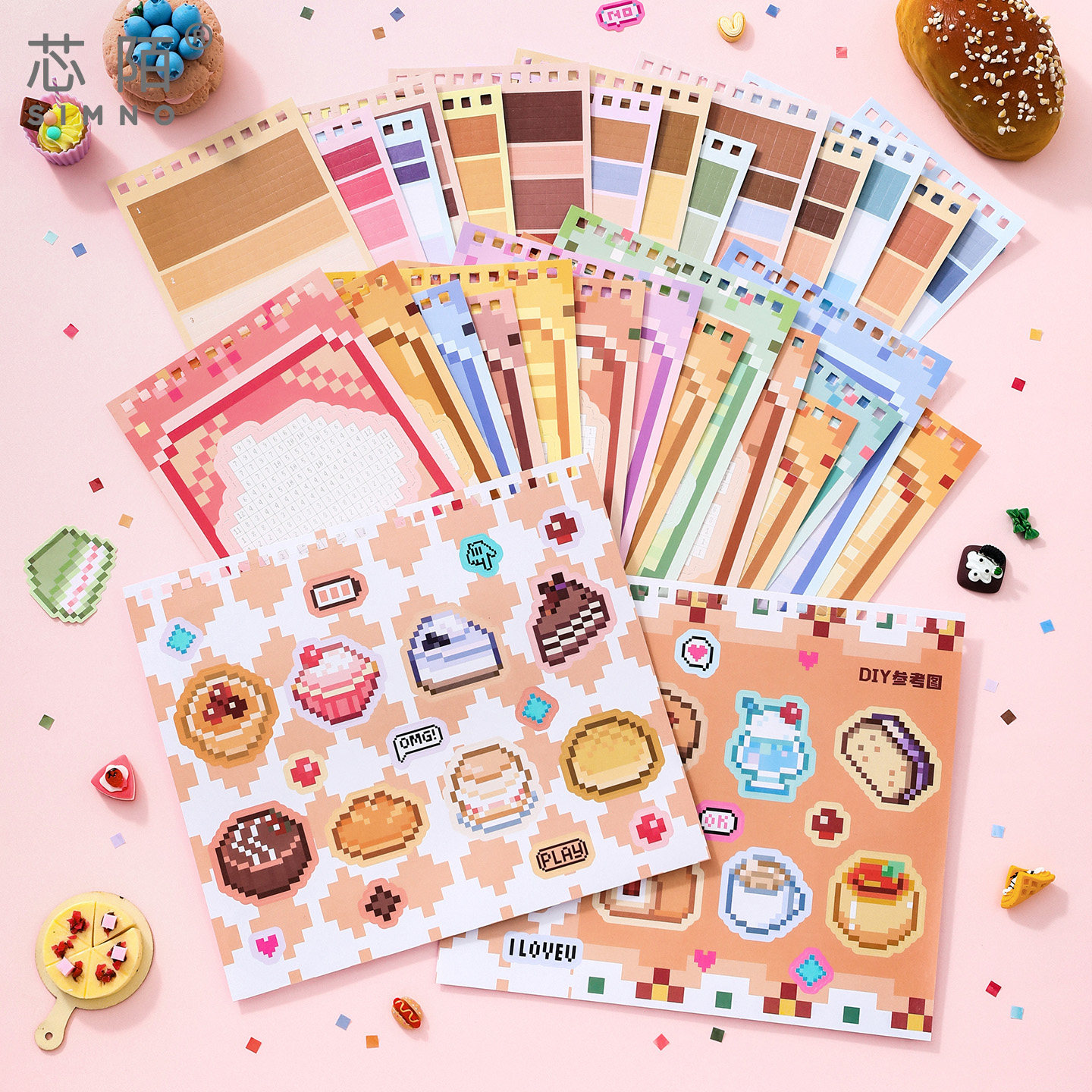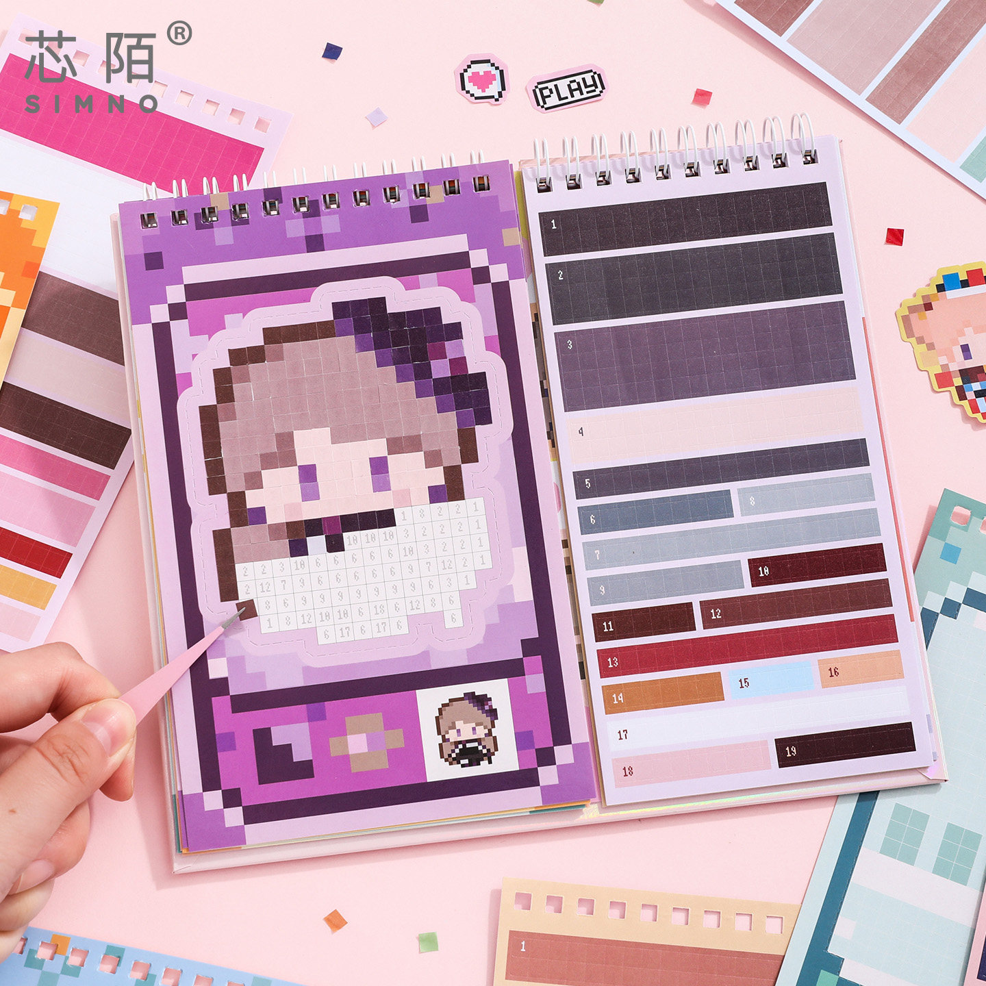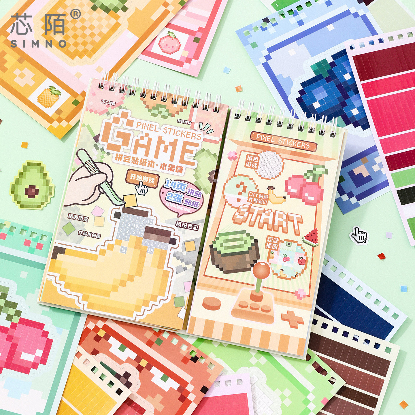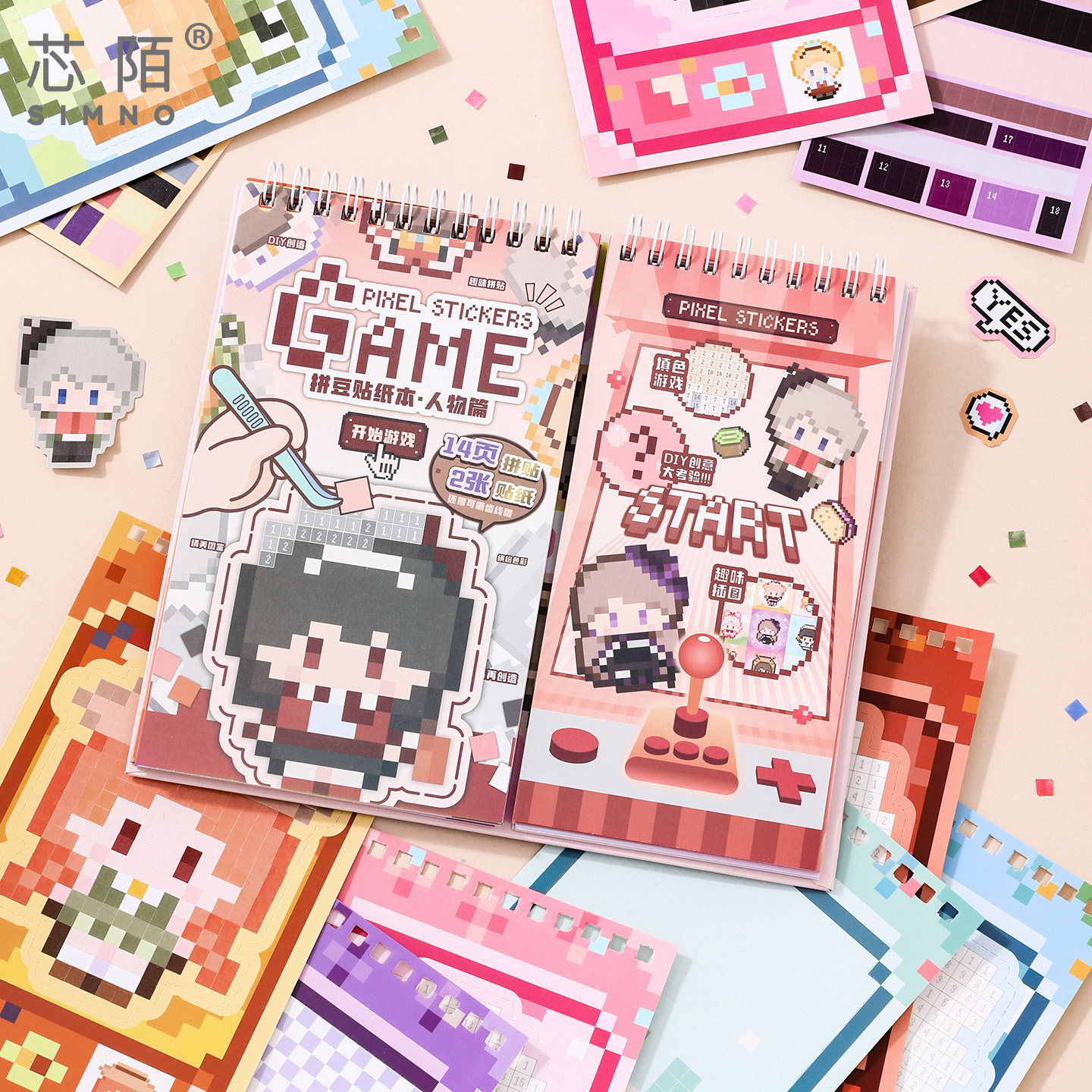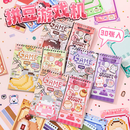 芯陌拼豆游戏机贴纸本像素风分线圈游戏册手帐场景贴纸书高颜值儿童手工益智玩具拼贴手账diy装饰素材小图案