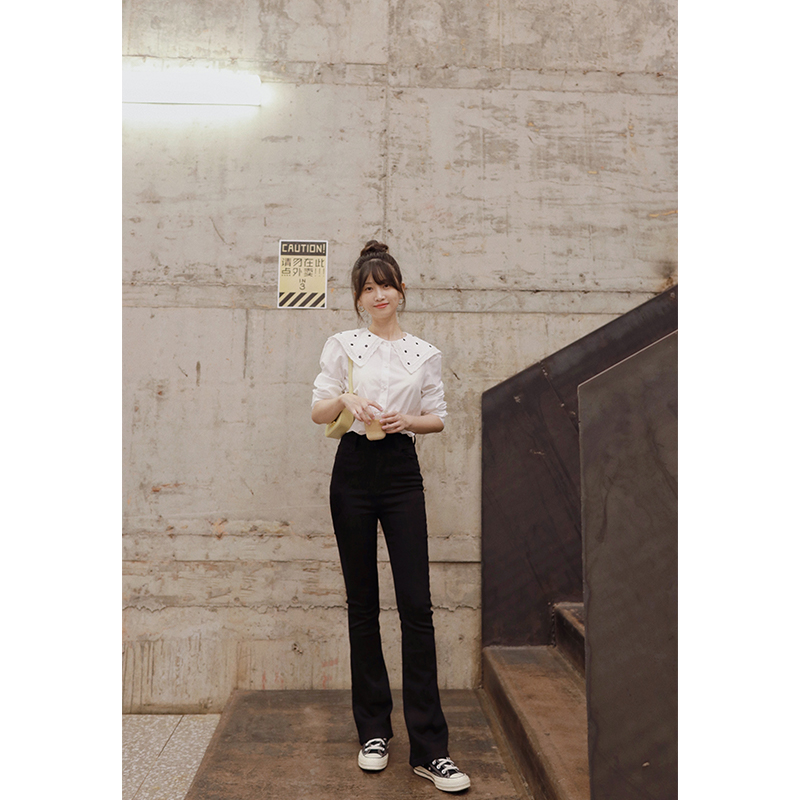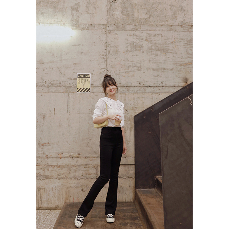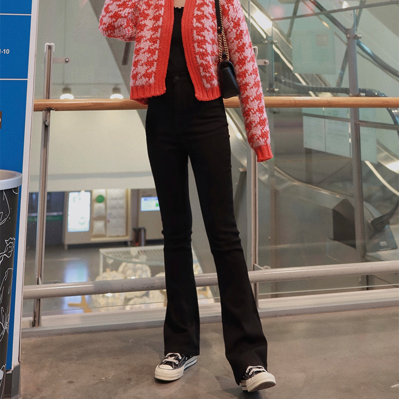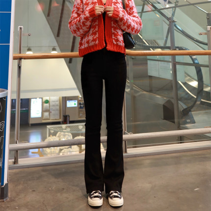 高腰秋季微喇黑色修身显瘦长裤