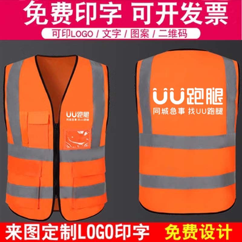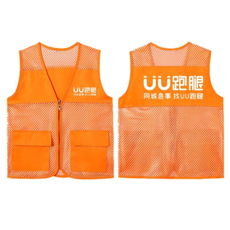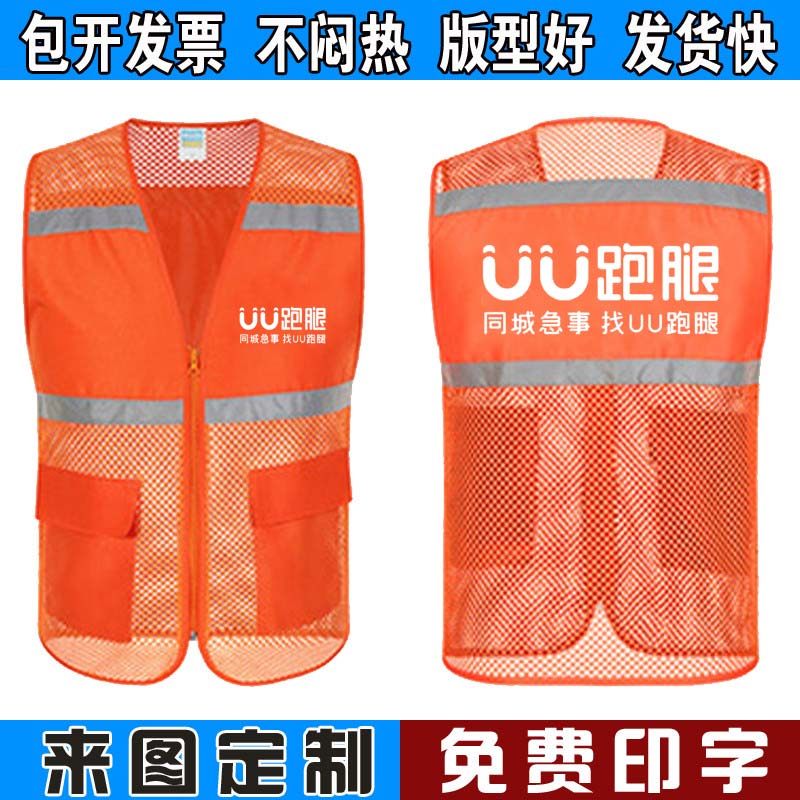 uu跑腿马甲定制logo印字外卖工作服帽子网格曹操同城急送反光条背