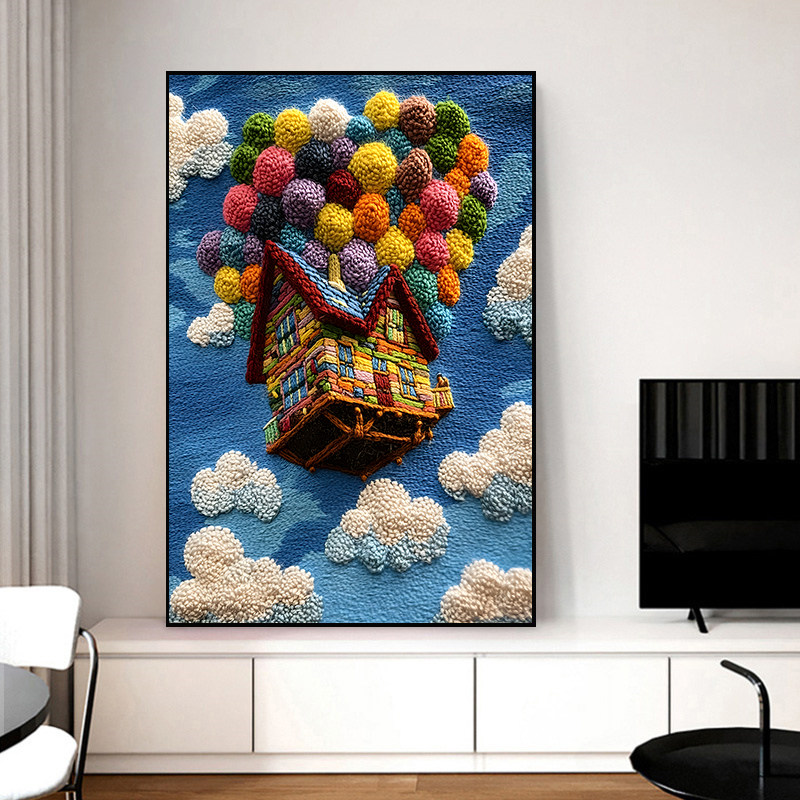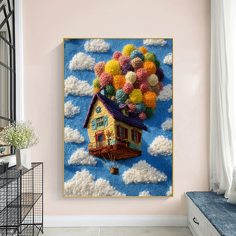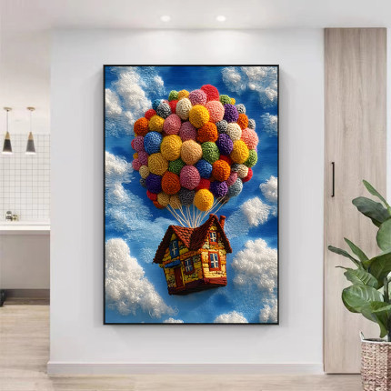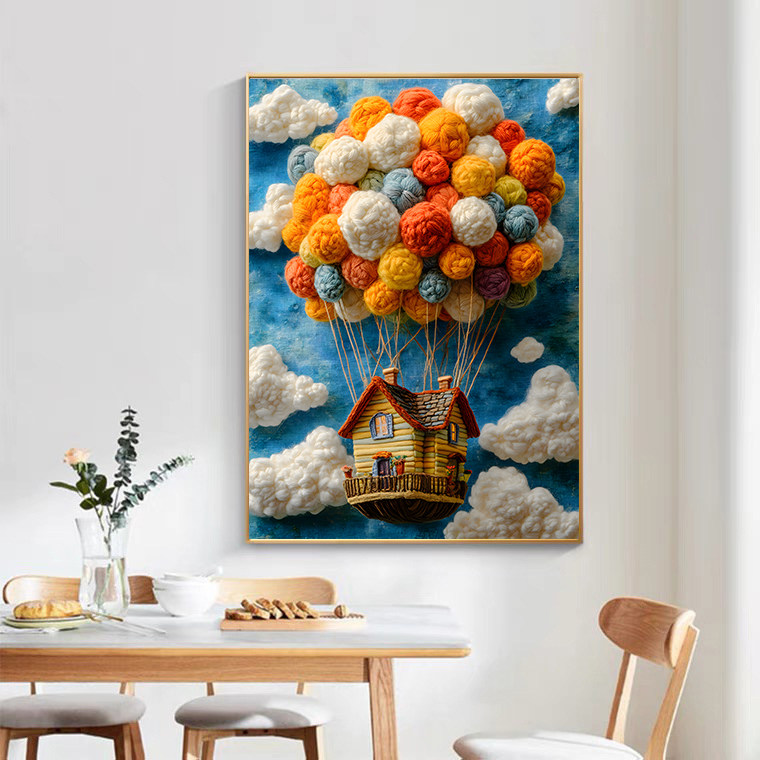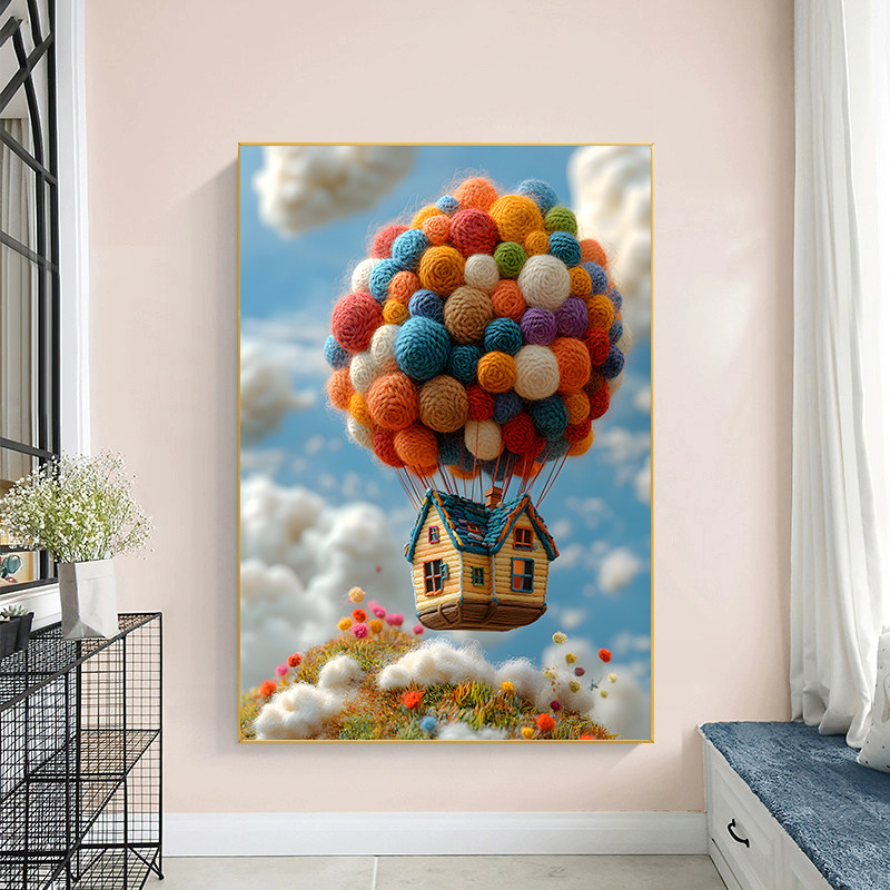 飞屋油画肌理感热气球小众艺术儿童房卧室客厅沙发背景墙装饰挂画