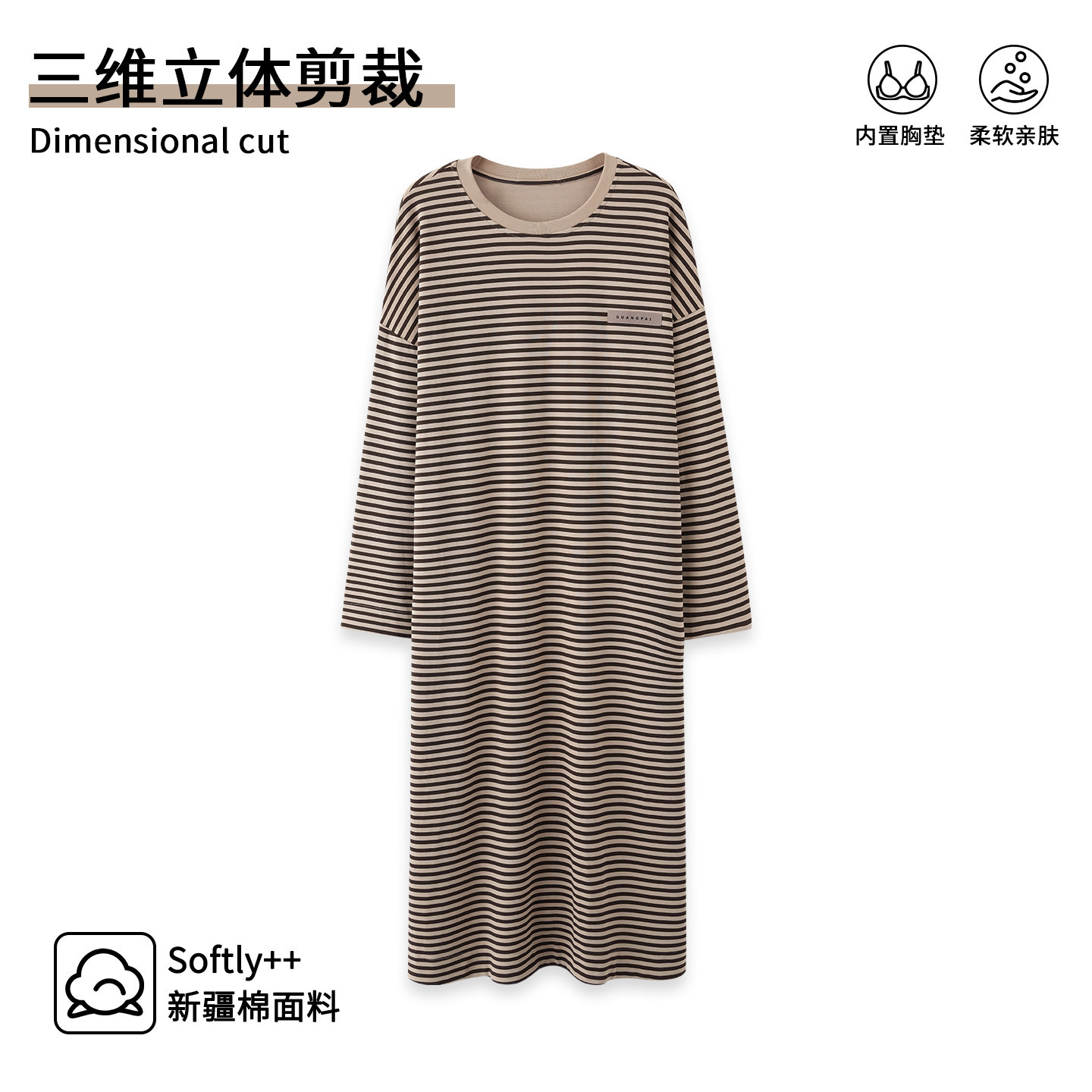 【芬腾】100%棉带胸垫纯棉睡裙春