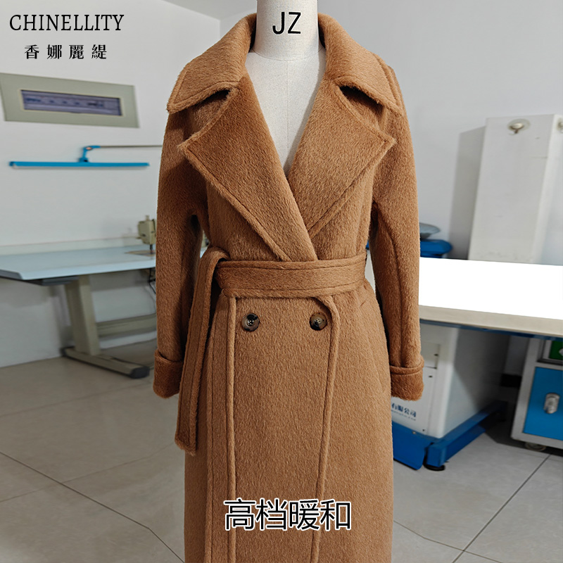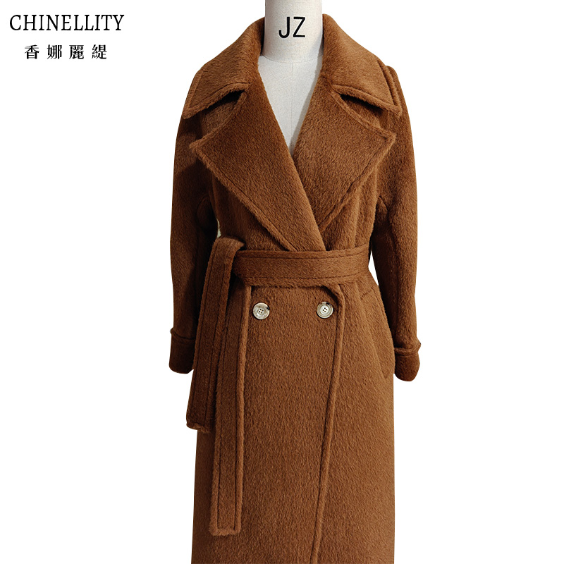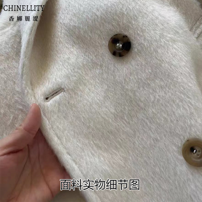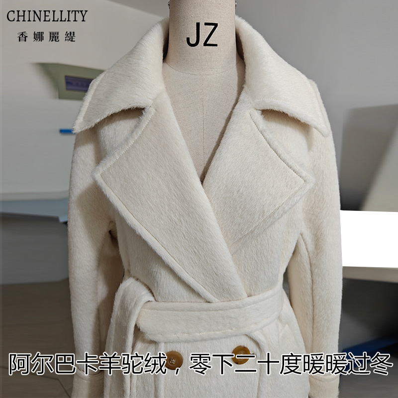 加厚羊驼绒阿尔巴卡奢品高端带里衬白色长款大衣超保暖毛呢外套女