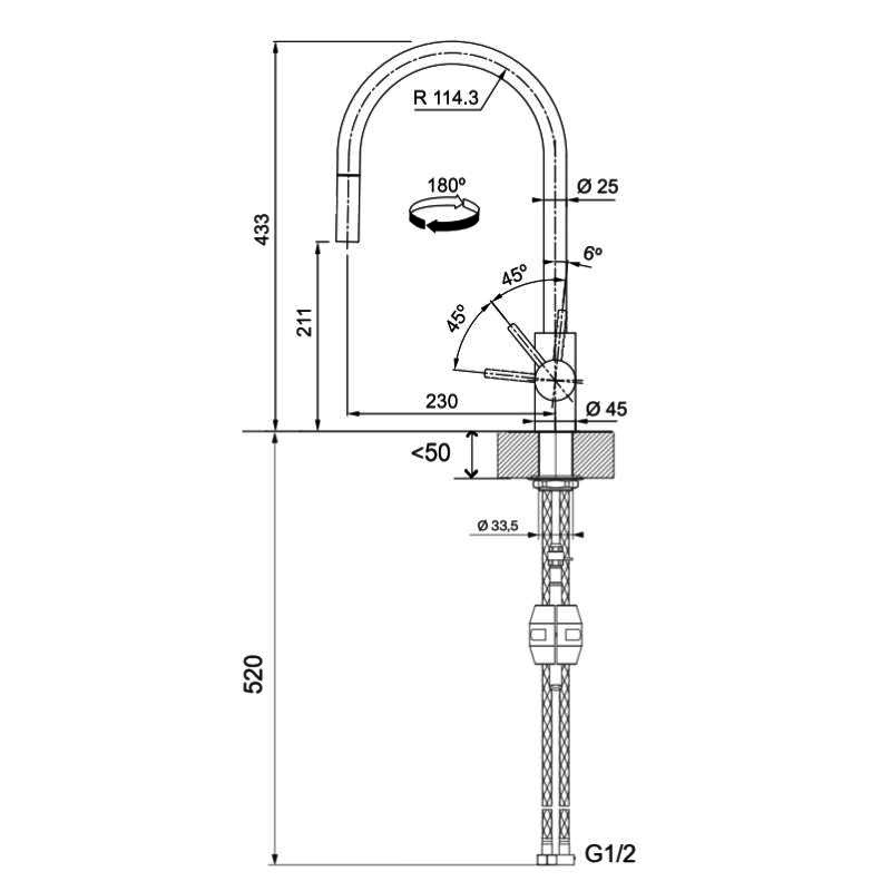 FRANKE弗兰卡304不锈钢拉丝厨房龙头单柄高抛抽拉式龙头CT136S