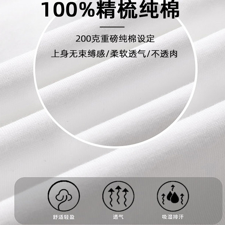 2026年夏季新款全棉短袖t恤男潮流纯棉重磅白色青少年半袖体恤衫