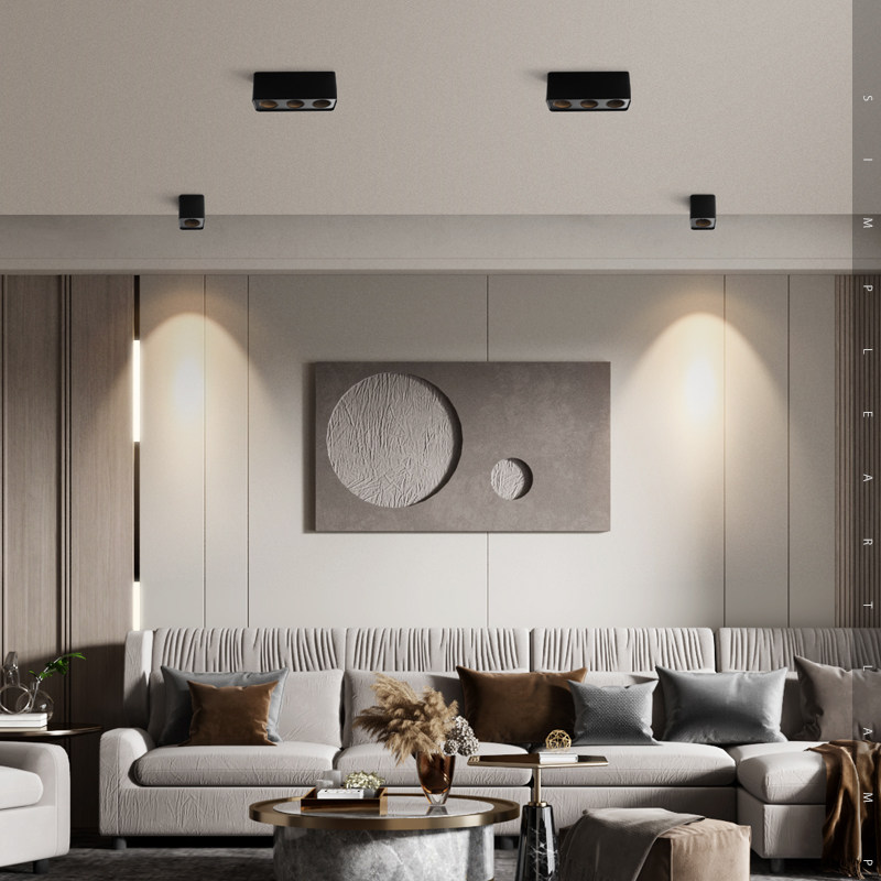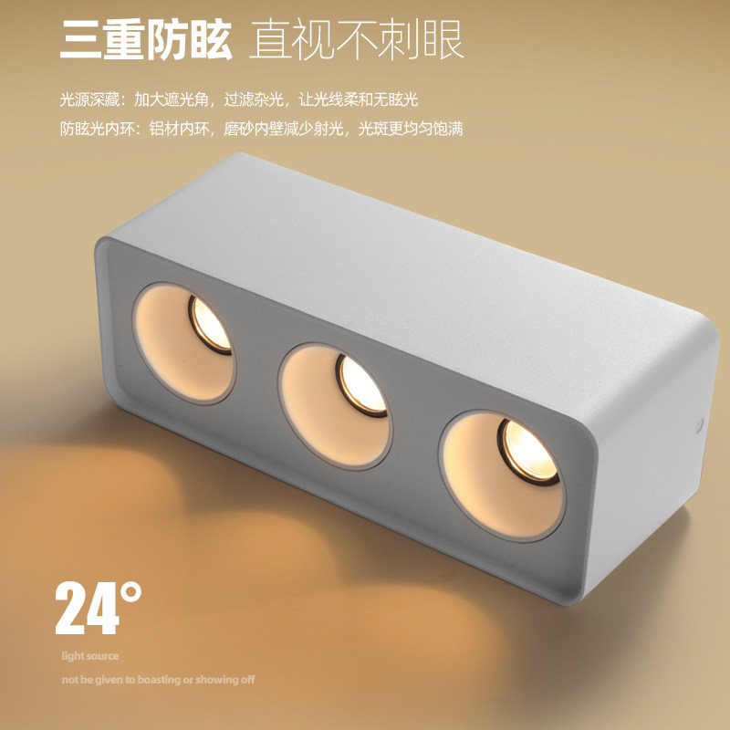 无主灯照明 三头明装斗胆灯格栅防眩射灯led筒灯吸顶集成餐客厅灯