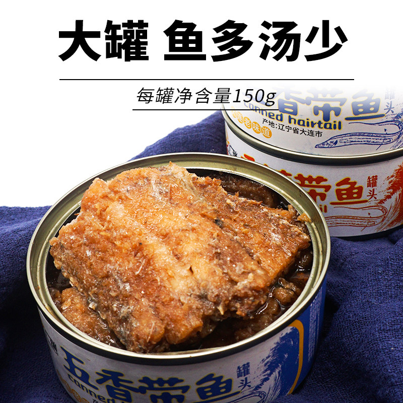 广瑞/大龙渔五香带鱼罐头即食鱼肉刀鱼香辣食品下饭午餐150g罐