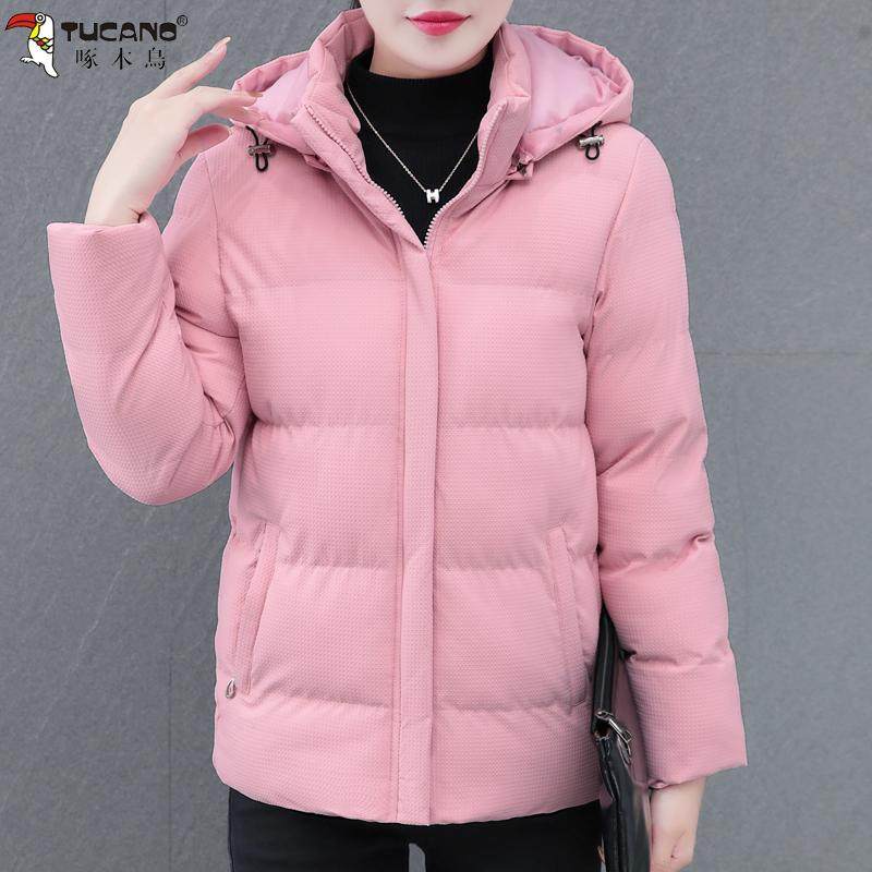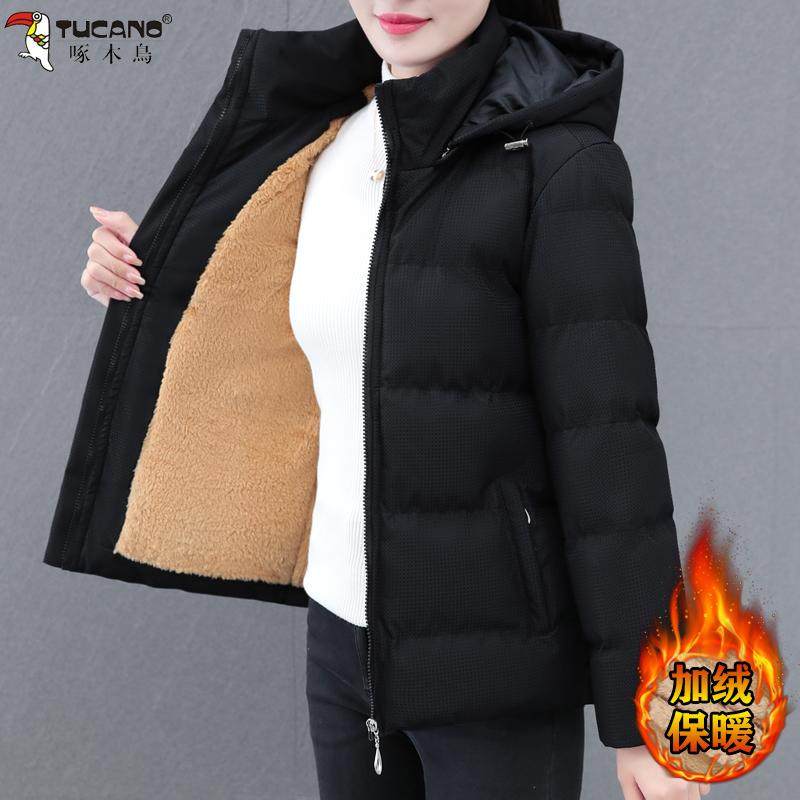 啄木鸟加绒棉衣女冬季2024新款中年妈妈大码加厚保暖短款棉服外套