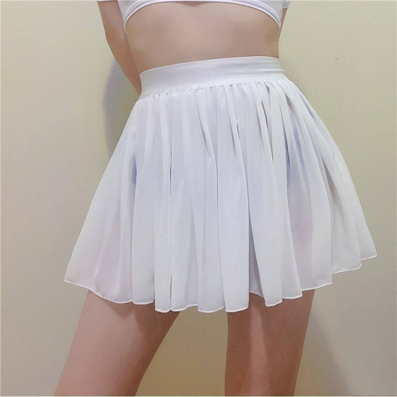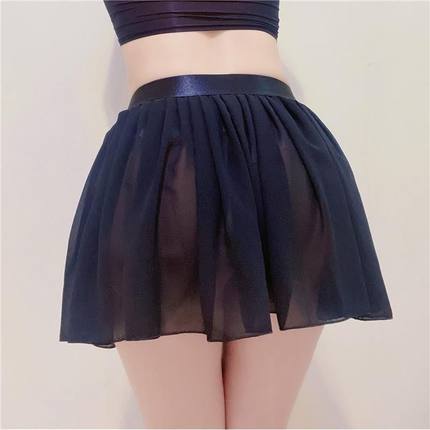 夜店网红方便漏出雪纺百褶裙半身裙高腰微透短裙打底情趣透视裙