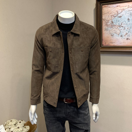 春秋季新款时尚翻领皮夹克男士韩版修身机车PU皮衣短款外套男装潮