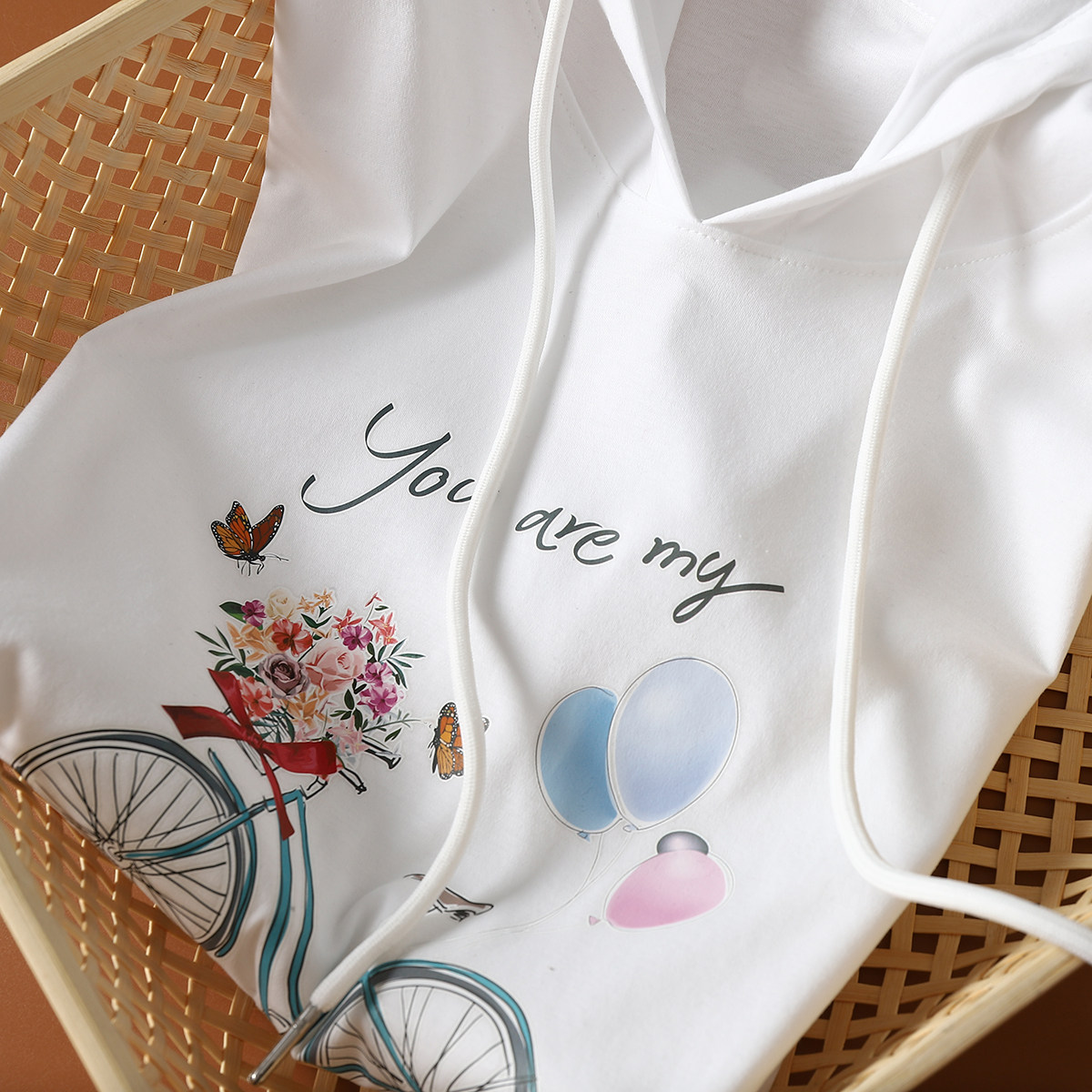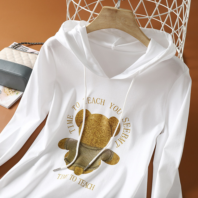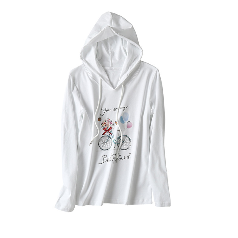 时尚休闲帽衫2025新款印花长袖t恤女连帽纯棉卫衣女春秋薄款外套