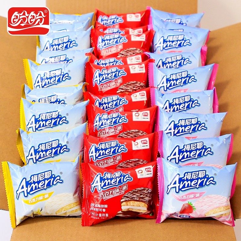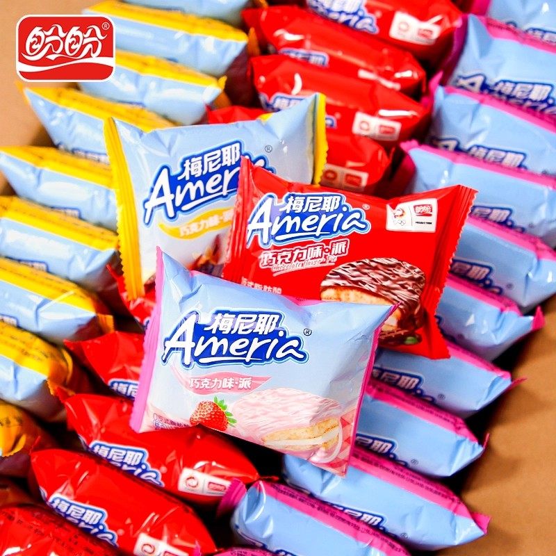 盼盼梅尼耶巧克力派夹心蛋糕饼干早餐代餐干面包草莓香草巧克力味