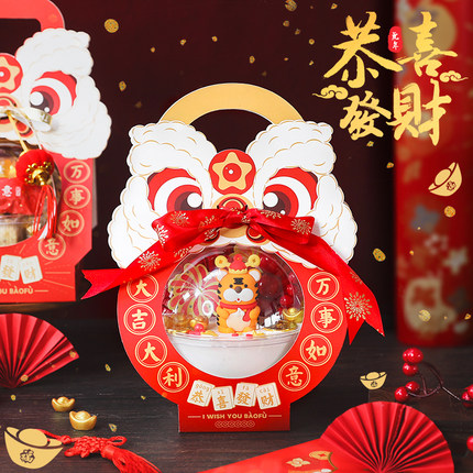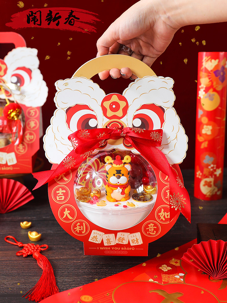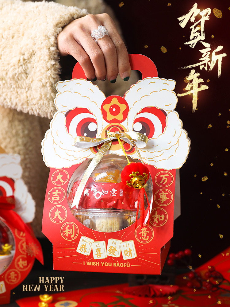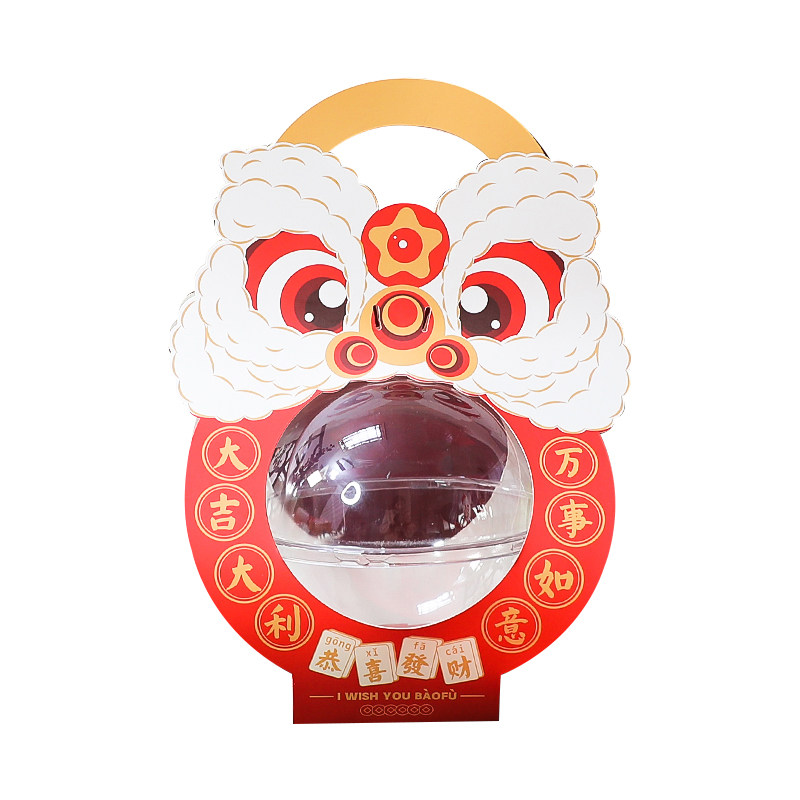 新年烘焙包装舞狮慕斯球手提盒抱抱桶蛋糕丝带灯笼财神装饰摆件