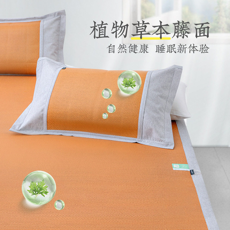 远梦艾草凉席三件套席子夏季藤席家用防滑双人1.8m床空调软草席