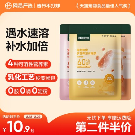网易严选低敏美毛0胶溶水猫条