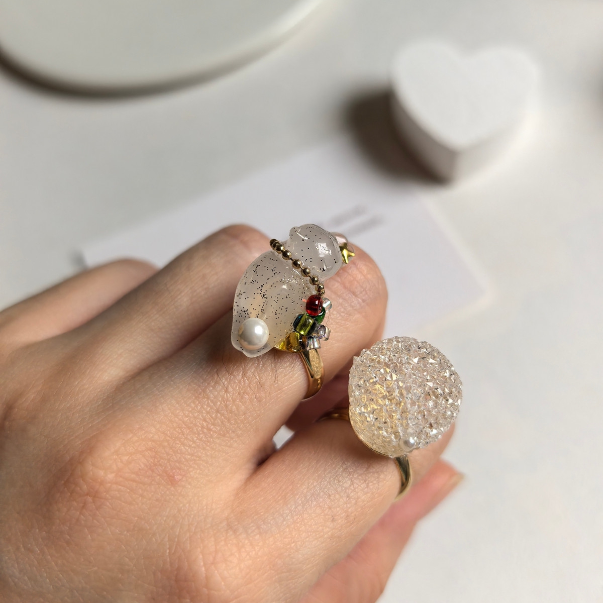 猫与糖 自制款猫咪花朵戒指 可爱砂糖球珍珠原创手作指环清透小喵