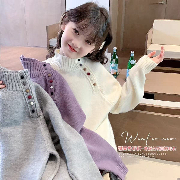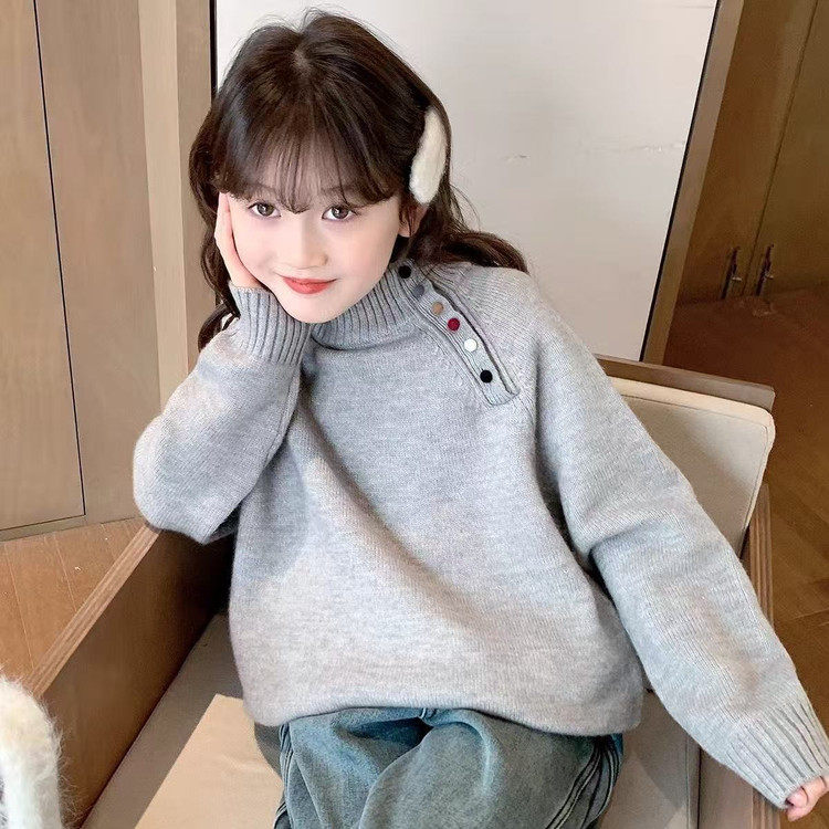 女童高领毛衣冬季2025新款韩版儿童加厚毛线衣针织衫女孩打底上衣
