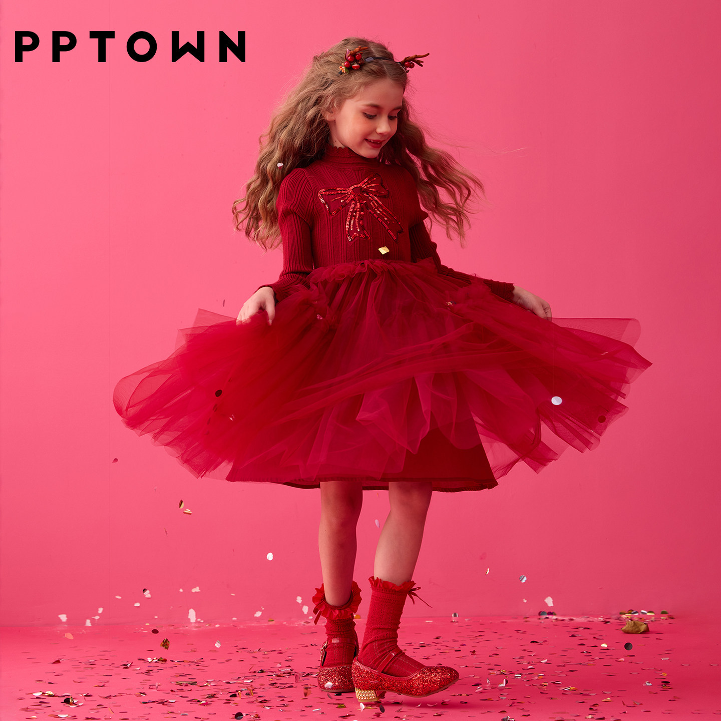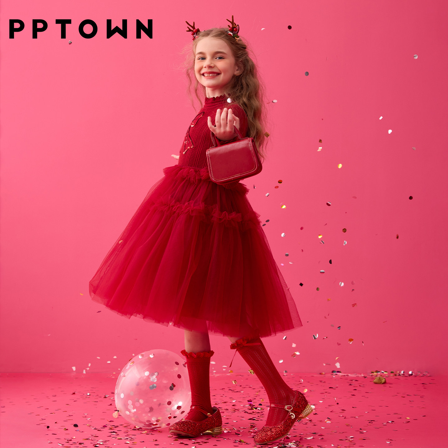 女童礼服连衣裙大童蓬蓬网纱公主裙女孩生日红色裙子儿童拜年服